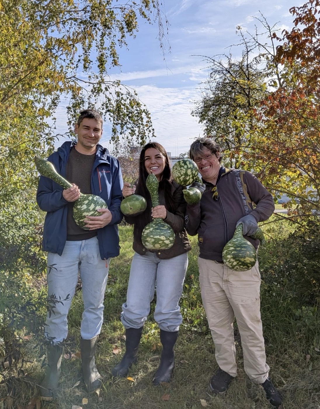 Dabei entstand ein sehr netter Kürbis-Schnappschuss von Severin Neira, seiner Kollegin Pranvera Berisha und seinem Kollegen Jakob Seereiter (alle drei IPZG).