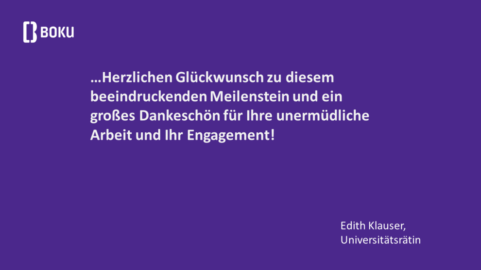 - Jubiläum 100 Jahre Ilse Wallentin (erste Doktorandin der BOKU)