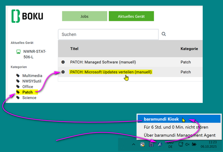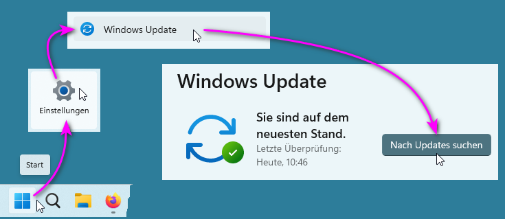 Auf Nicht-BOKUclients-gemanagten Geräten können Sie die Suche nach Windows Updates wie in der Grafik unten beschrieben manuell anstoßen.
