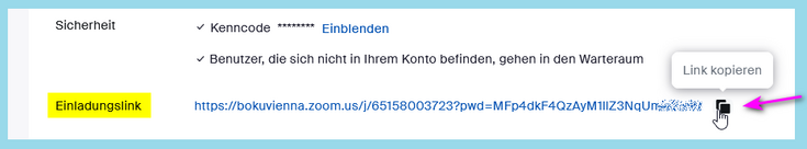 Nach dem Erstellen des Meetings kopieren Sie den Einladungslink.