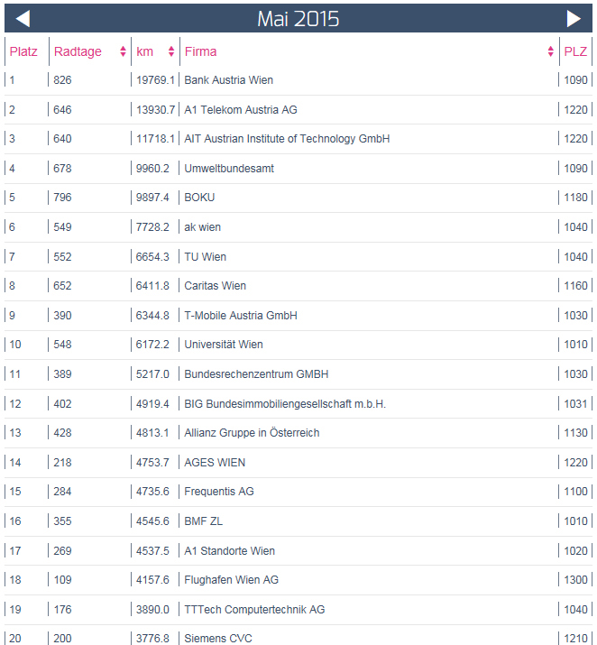 Radelt zur Arbeit - Ergebnisse Mai 2015