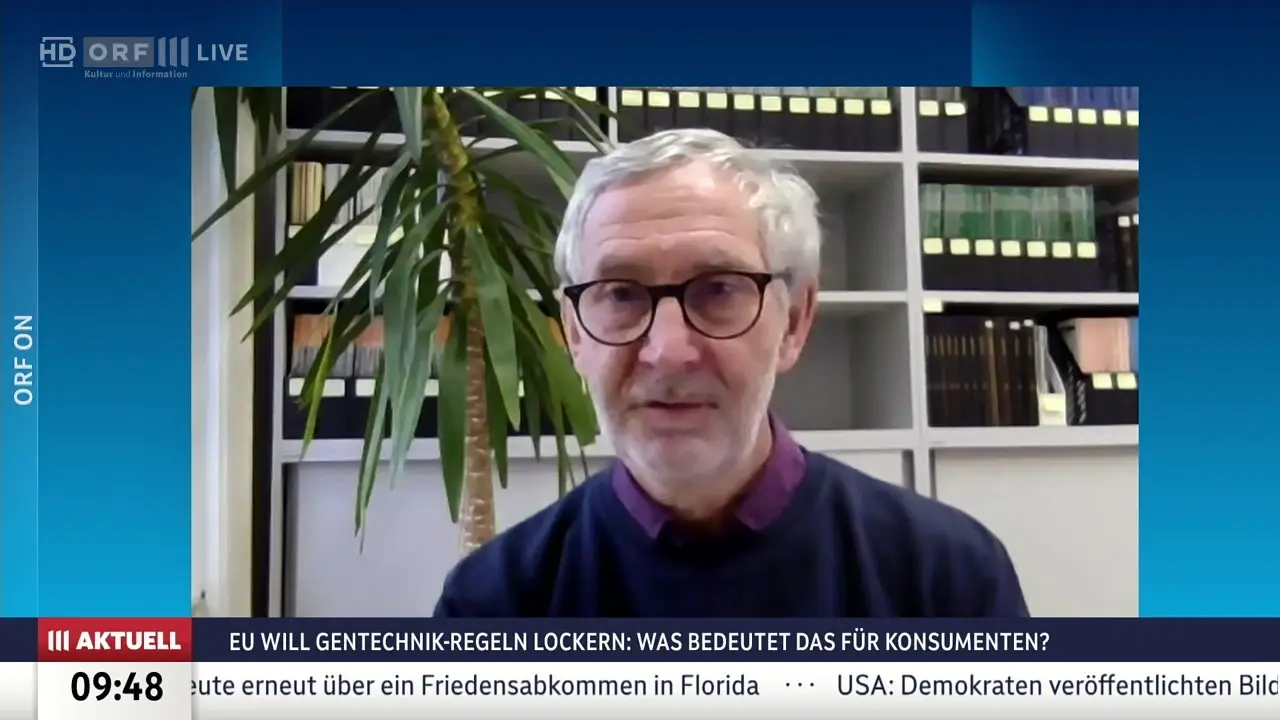 Hermann Bürstmayr, Professor of Plant Breeding at the University of Natural Resources and Life Sciences in Vienna (BOKU), joined the ORF III aktuell studio via Zoom. He spoke about the EU's plans to relax genetic engineering regulations and explained the opportunities and possibilities offered by modern genetic engineering.