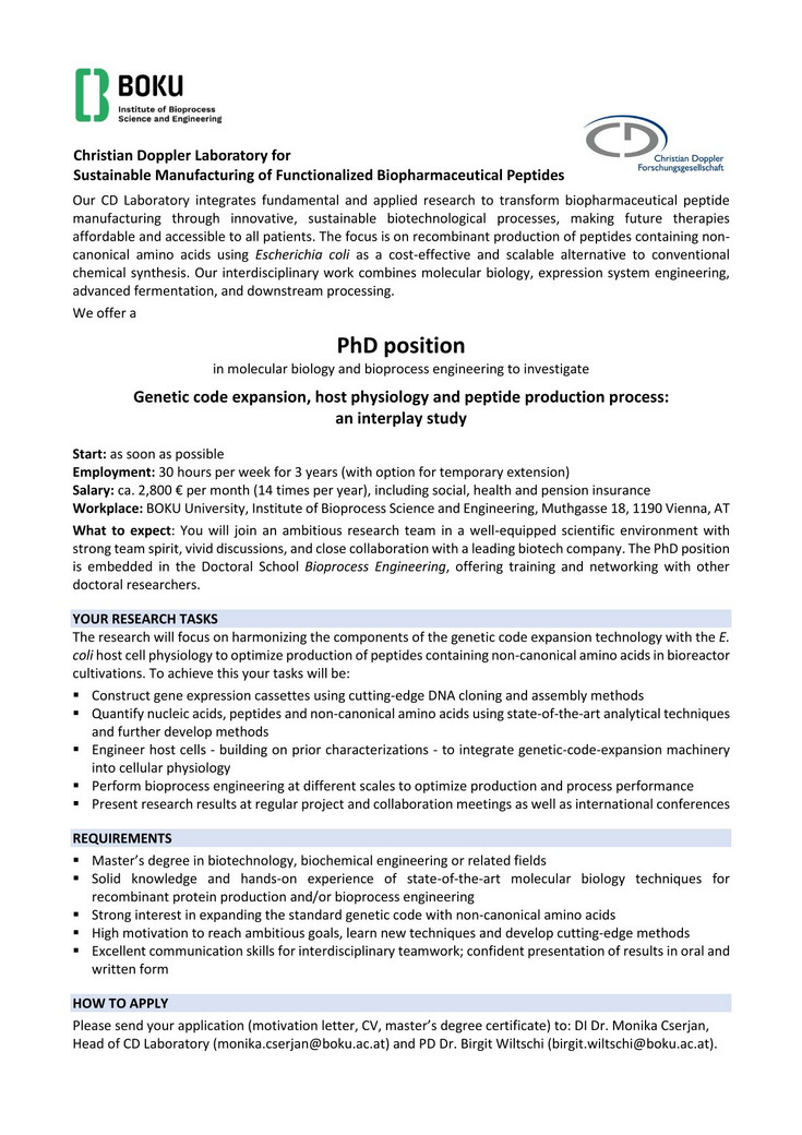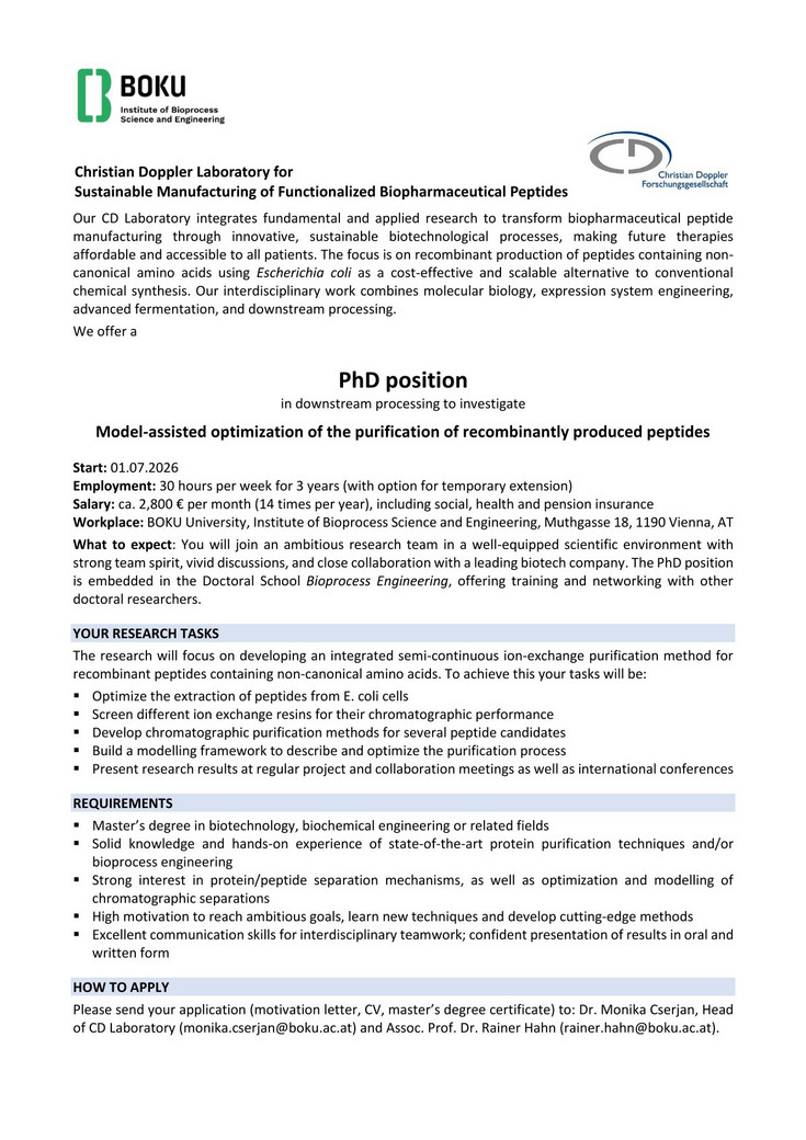 Jobs BOKU-StartDepartment of Biotechnology and Food ScienceInstitute of Bioprocess Science and EngineeringJobs This page is available under these URLs: https://boku.ac.at/en/btlw/ibse/jobs https://short.boku.ac.at/59ek9v