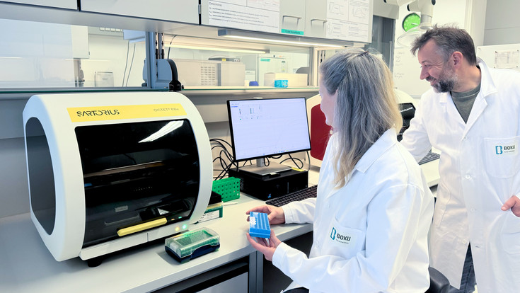 The Octet R8e from Sartorius enables label-free analysis of biomolecular interactions using biolayer interferometry (BLI). The instrument operates in a dip-and-read format in 96- and 384-well plates allowing measurements directly in complex matrices or only partially purified samples. Up to eight interactions can be analysed simultaneously, enabling efficient kinetic measurements and high-throughput screening. The system monitors binding events in real time and allows determination of binding kinetics and affinities between proteins, antibodies, nucleic acids, and other biomolecules. The sample reusability and sample volumes as low as 40 µL is particularly advantageous when working with limited or valuable samples. Typical applications include binding characterization, epitope binning, and concentration analysis.