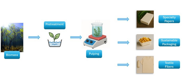 Figure 1: General overview of the biomass pretreatment and pulping process for bio-based applications