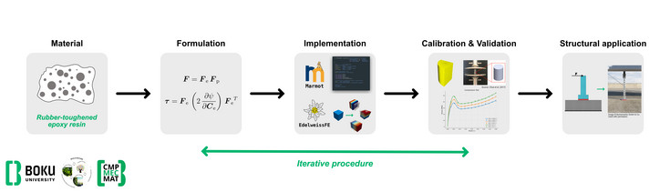 Structural thermosetting adhesives, such as rubber-toughened epoxy resins, are widely used in different engineering branches due to their high strength and stiffness, excellent adhesion to diverse substrates, and high chemical resistance. Compared to traditional fastening methods, adhesive bonding offers distinct benefits, such as a high strength-to-weight ratio, the ability to join dissimilar materials, and cost-efficiency, that align with the principles of lightweight design, sustainability, and energy efficiency.
