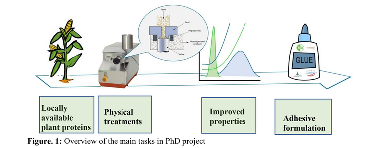 Synthetic wood adhesives, such as urea formaldehyde and phenol formaldehyde resins, dominate the wood composites industry but are associated with health and environmental concerns, formaldehyde emissions, and limited sustainability. Plant proteins, including maize and potato protein, are abundantly available in Europe and offer a renewable alternative; however, their native globular structures and poor moisture resistance currently limit their performance as structural adhesives. While chemical modification strategies have been widely explored, the potential of mechanical processing routes to tailor protein structure and functionality remains insufficiently understood, particularly in the context of wood adhesion. The central research gap addressed in this PhD is the lack of systematic, materials science-based understanding of how different mechanical treatments influence the structure property performance relationships of plant proteins used as wood adhesives. This project aims to (i) apply and compare scalable mechanical/thermo-mechanical modification techniques; (ii) characterize the resulting changes in plant proteins structures/properties; and (iii) correlate these changes with adhesive strength and durability under both dry and wet conditions. By benchmarking protein-based adhesives against conventional synthetic systems, this research seeks to establish design principles for high-performance, bio-based wood adhesives suitable for industrial application.