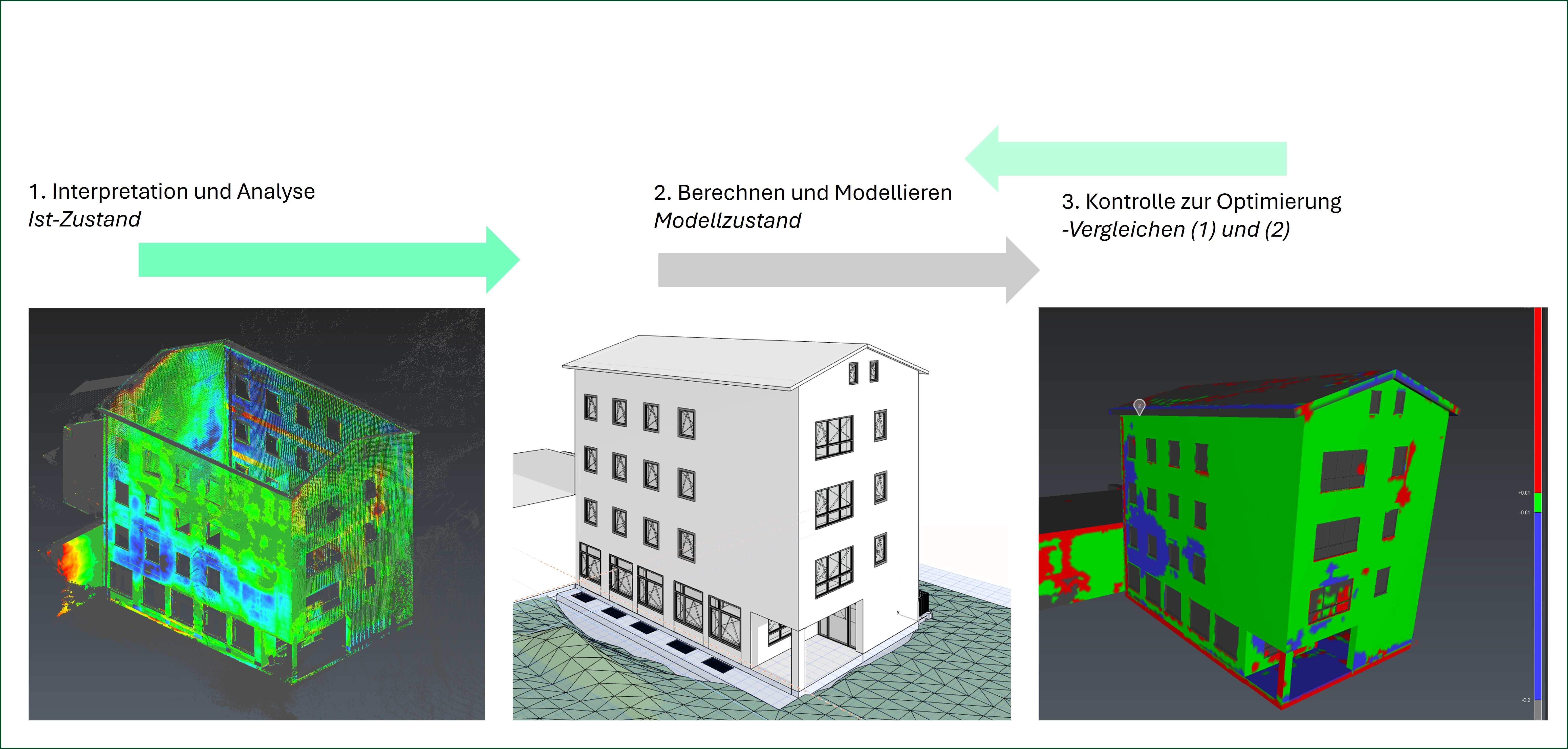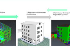 Several innovative approaches were investigated in the project. These included digital inventory using laser scanning and drone photogrammetry, the development of an optimized layer structure for the facade, and the automation of production through the use of industrial robots. Two 1:1 scale prototype walls were constructed in the laboratory and used for practical testing. This allowed assembly processes with facade elements to be tested, assembly systems and efficient connection techniques between the modules to be investigated, and measures to minimize thermal bridges to be evaluated. In addition, jointless, rear-ventilated plaster facades and various facade claddings were tested for their practical suitability.