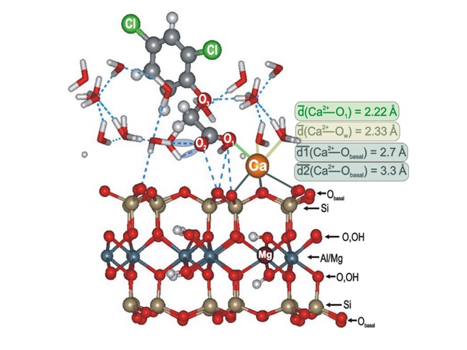 This research focus investigates the molecular interactions of contaminants with reactive soil surfaces. Reactive surfaces are modeled at the atomic and molecular level and their interaction with agrochemicals and other contaminants is investigated using computational chemistry. For this, very precise and computationally demanding quantum chemical methods are used, as well as classical molecular mechanics (force-field) methods for the investigation of larger systems, as is necessary for soil science questions.