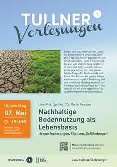 As part of the Tulln Lecture Series at Campus Tulln Technopol, Martin Gerzabek will speak on 7 May 2026 on the topic: