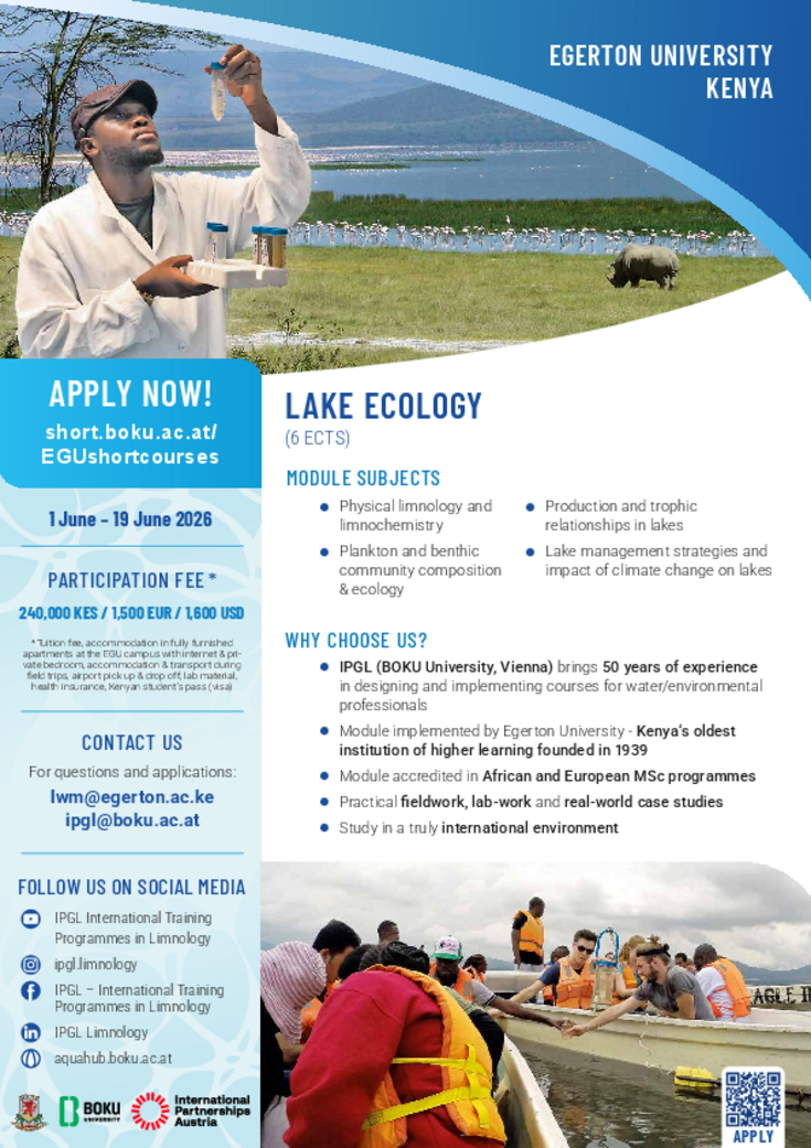 Currently, 25,000 students are enrolled in various undergraduate and postgraduate programmes. EGU has the capacity to carry-out research to address freshwater issues, as more than 30 staff members have been trained in aquatic sciences in Austria, The Netherlands, United Kingdom, Germany and USA. EGU’s international partnerships provide synergy effects and networking platforms for Eastern African universities, other stakeholders and the larger society.