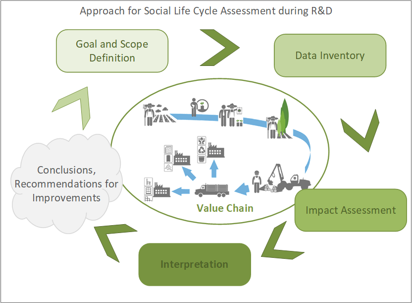 S-LCA is still under development, there are several challenges to solve, like the selection of appropriate and expressive indicators, finding a way for efficient data collection and adequate valuation methods. For this purpose, a mixed-methods approach of quantitative as well as qualitative characteristics is intended.