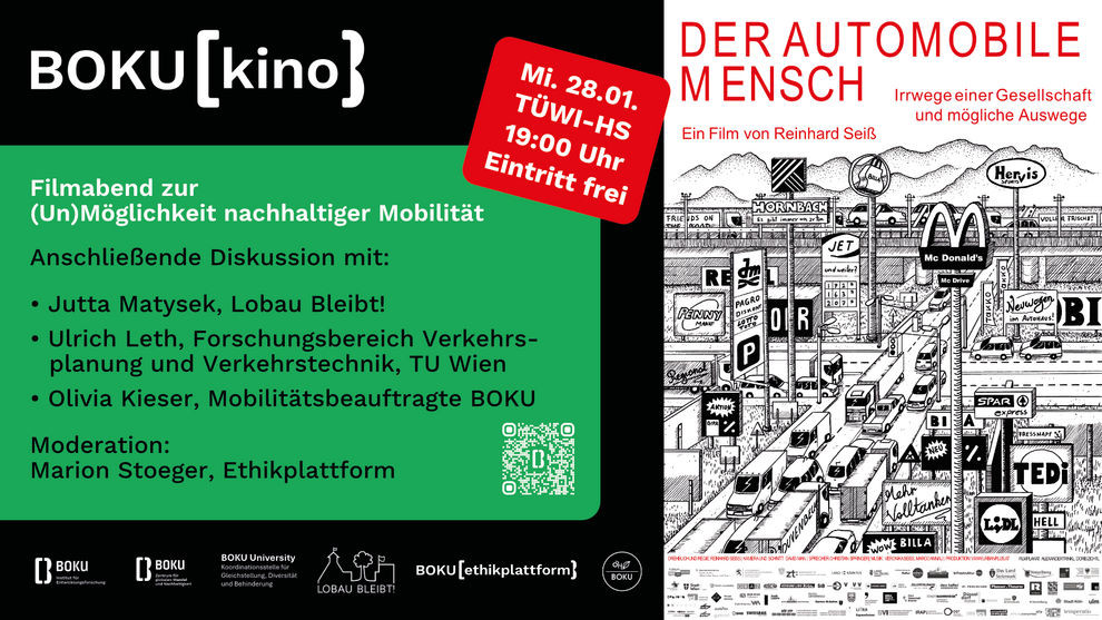 Das BOKU-Kino zeigt den Dokumentarfilm "Der automobile Mensch – Irrwege einer Gesellschaft und mögliche Auswege" von Reinhard Seiß.