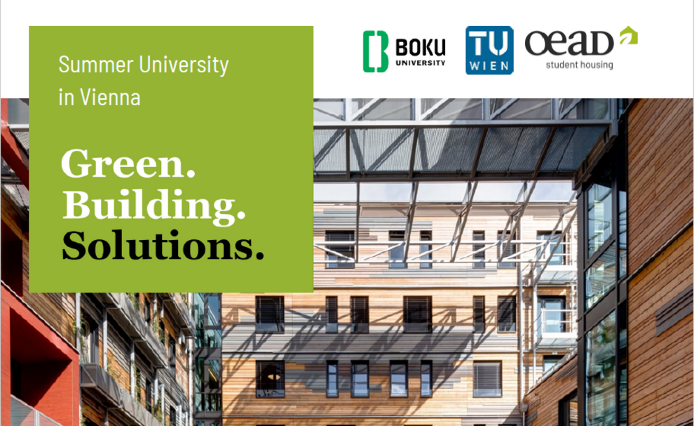 The Summer University “Green.Building.Solutions.” (GBS, 7 ECTS) specializes on first-hand ecological knowledge and engineering expertise transferred by Austria’s leading experts in the field of architecture, design, and construction. The program deals with the ecological, economic, technical, and social aspects of green building and construction. Participants deepen their knowledge in passive house planning, sustainable urban development, new energy technologies, innovative architecture, and ecological design. The program includes excursions to Vienna’s best-practice buildings and projects in sustainable construction as well as social, sports and cultural events, while over 30 different experts and lecturers contribute! A group design project aims to incorporate the gained knowledge within a real building project in Vienna - which is presented at the end of the course before the grand farewell.