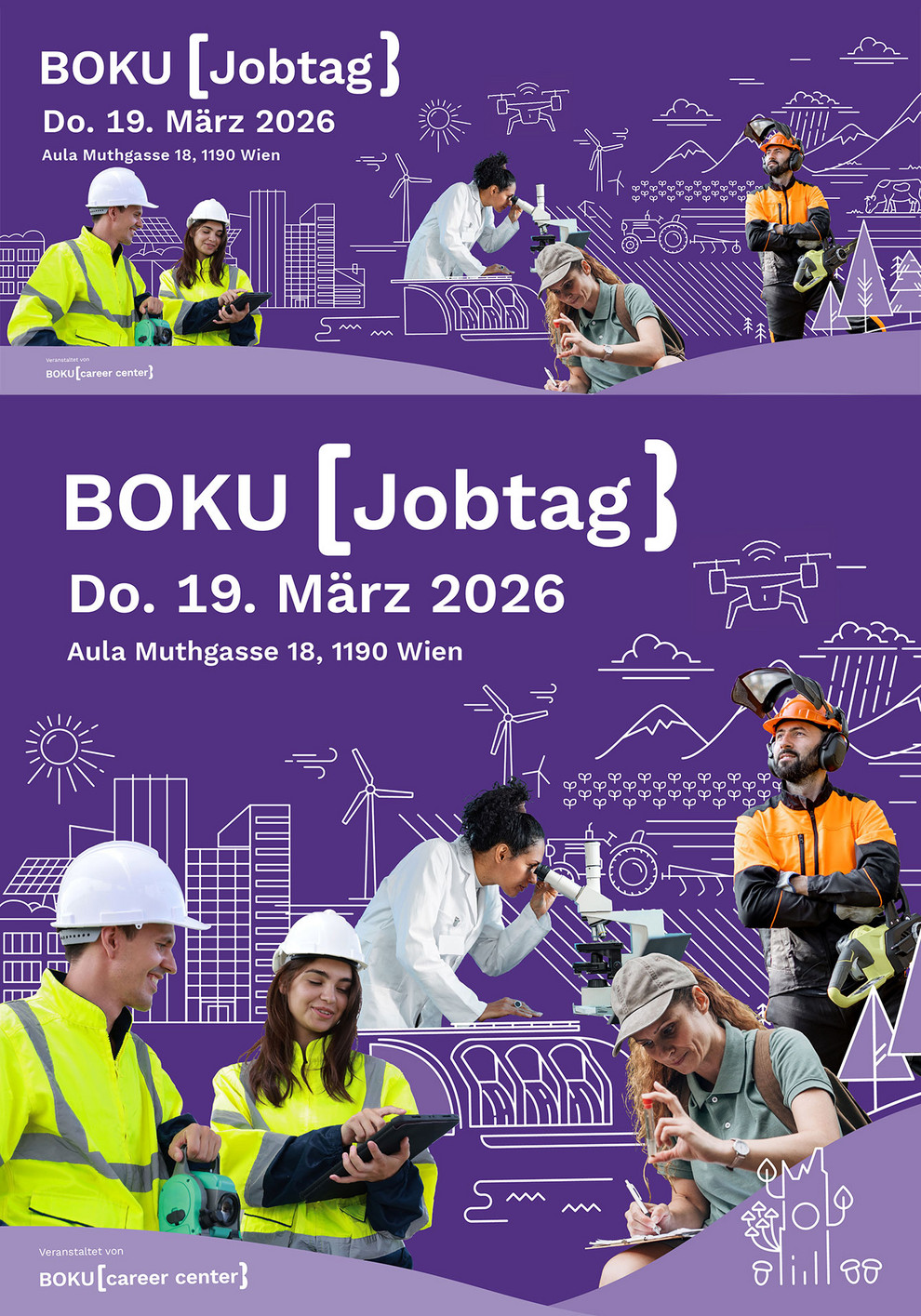 Komm vorbei beim BOKU Jobtag 2026 und nutze die Chance direkt mit den teilnehmenden Unternehmen und Organisationen in Kontakt zu treten. Neben dem Messebetrieb mit zahlreichen Firmenständen erwarten dich spannende Vorträge und ein spannendes Rahmenprogramm mit Podiumsdiskussion, Bewerbungsfotoaktion und vielem mehr!