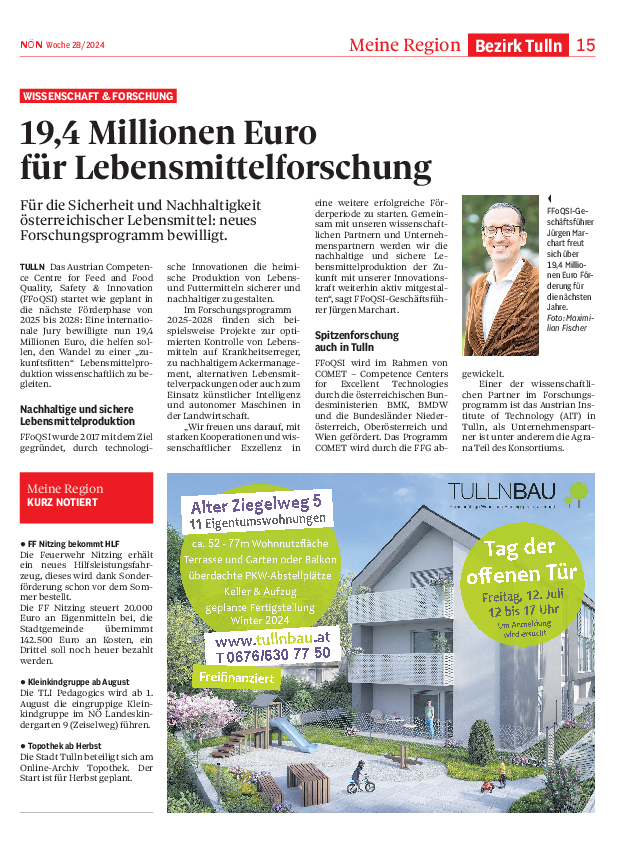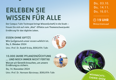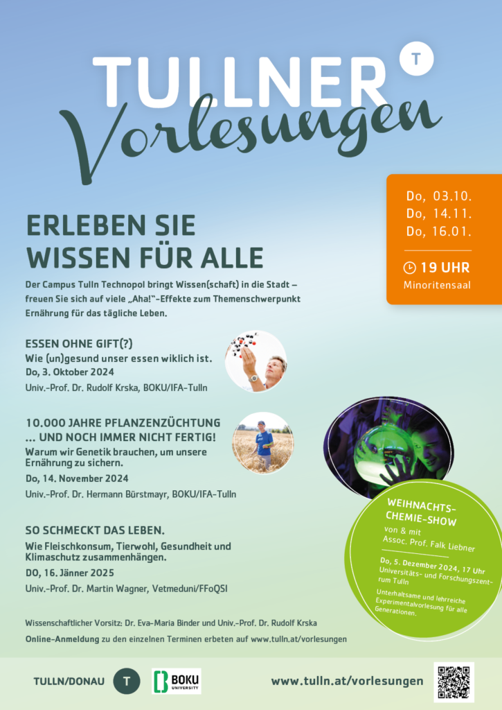 Der Campus Tulln Technopol vereint Ausbildung, Forschung und Wirtschaft auf höchstem Niveau. Nun bringen die Forscherinnen und Forscher ihr Wissen auch direkt ins Stadtzentrum: Im Rahmen der „Tullner Vorlesungen“ finden Vorträge und Diskussionen im Tullner Rathaus statt – bei freiem Eintritt und gespickt mit spannenden Fakten für den Alltag. Der Schwerpunkt im Wintersemester 2024/25 liegt auf dem Themenbereich Ernährung.