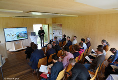 Die Abschlussveranstaltung fand im Universitäts- und Forschungszentrum Tulln (UFT) statt. Zentrale Projektergebnisse der technischen Machbarkeit über Lebenszyklusanalysen bis hin zu politischen Rahmenbedingungen wurden präsentiert. Ein besonderes Highlight war die Besichtigung des Demonstrators, bei der die verbauten Verbindungsmittel der Bauelemente durch den Einsatz einer Augmented-Reality-Brille für die Besucher:innen sichtbar wurden.