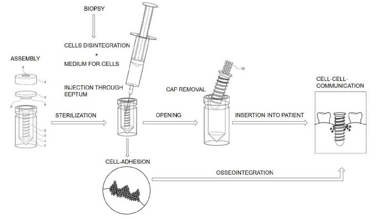 Keywords: Dental implant container, needle-piercable septum, In vitro coating, heat sterilizable, Culture-compatible