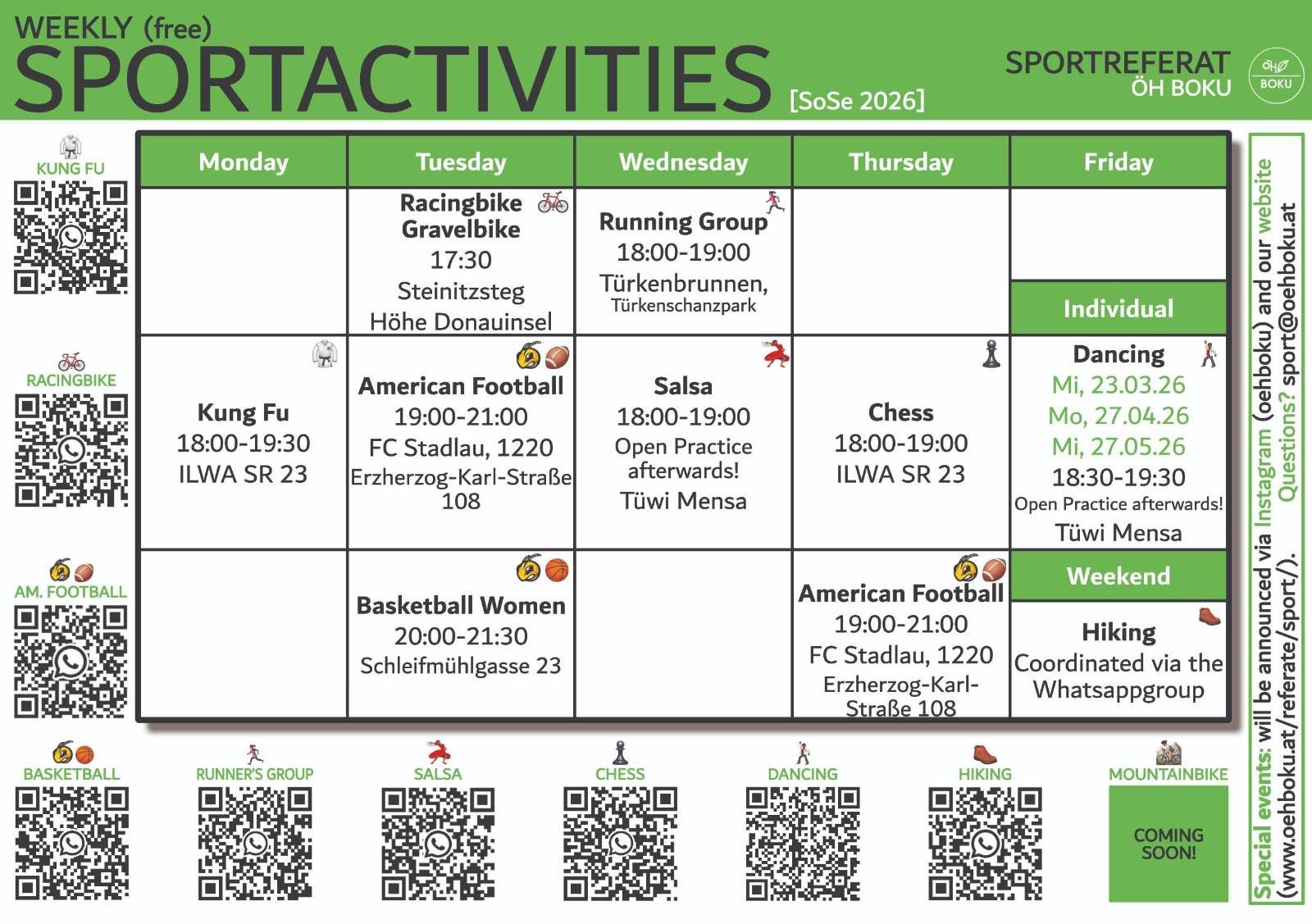 BOKU offers many Sport Courses this semester: