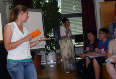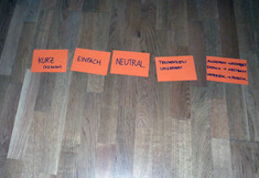 In einem Workshop wurden am Beginn des Schuljahres gemeinsam von SchülerInnen und WissenschaftlerInnen die Ziele des Projektes wiederholt. Anschließend stellten die SchülerInnen in Kurzreferaten Grundlagen zu den Materialien Beton, Stahl, Holz und lebende Pflanzen vor. Die von den SchülerInnen und WissenschatlerInnen zusammengestellten Fragebögen zur ästhetischer Leistungsfähigkeit der Materialien wurden noch einmal durchgearbeitet, die Auswertung besprochen und der Startschuss zur Befragung gegeben. Dies war der letzte Teil der Einarbeitungsphase.