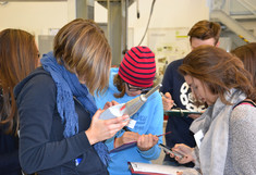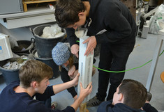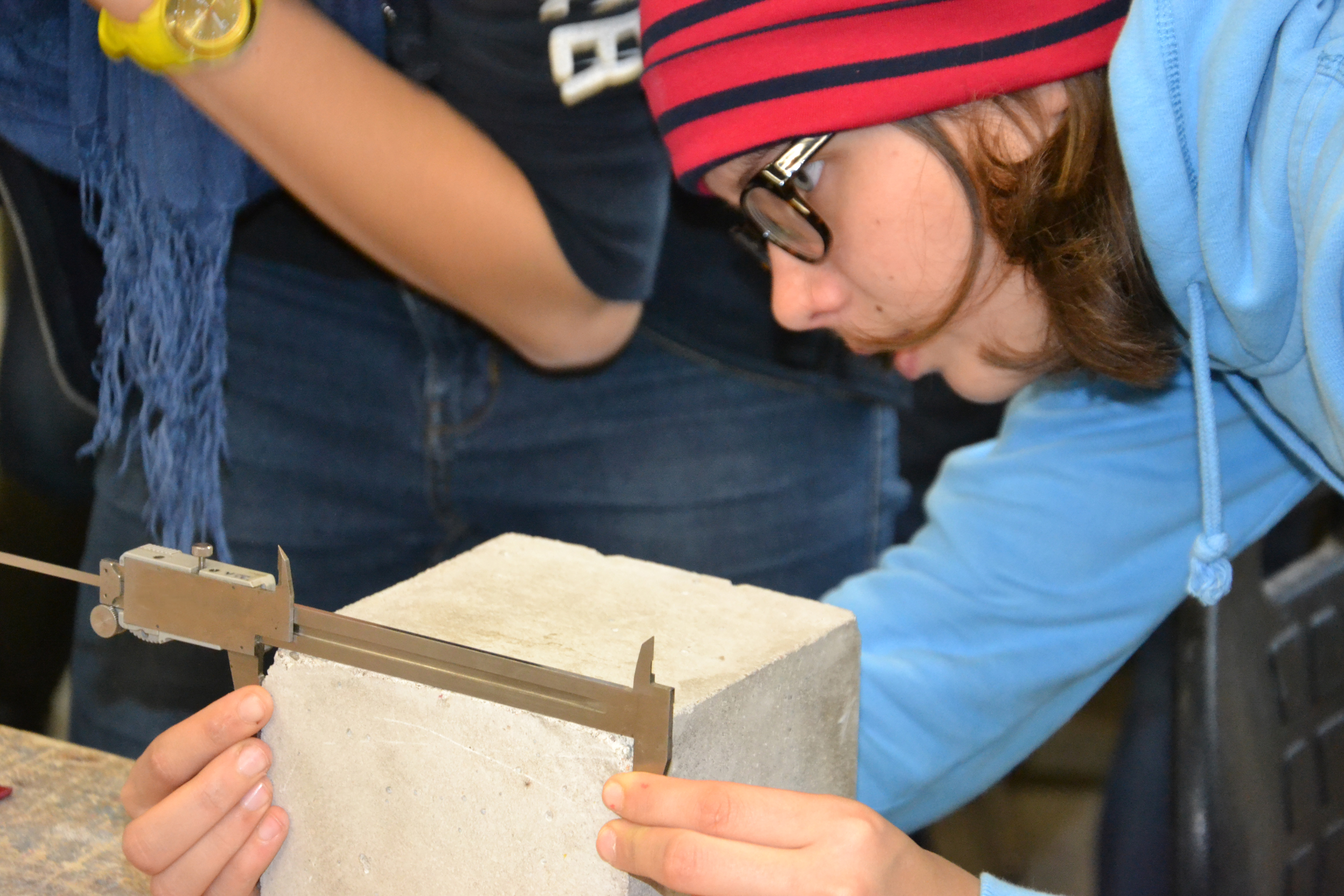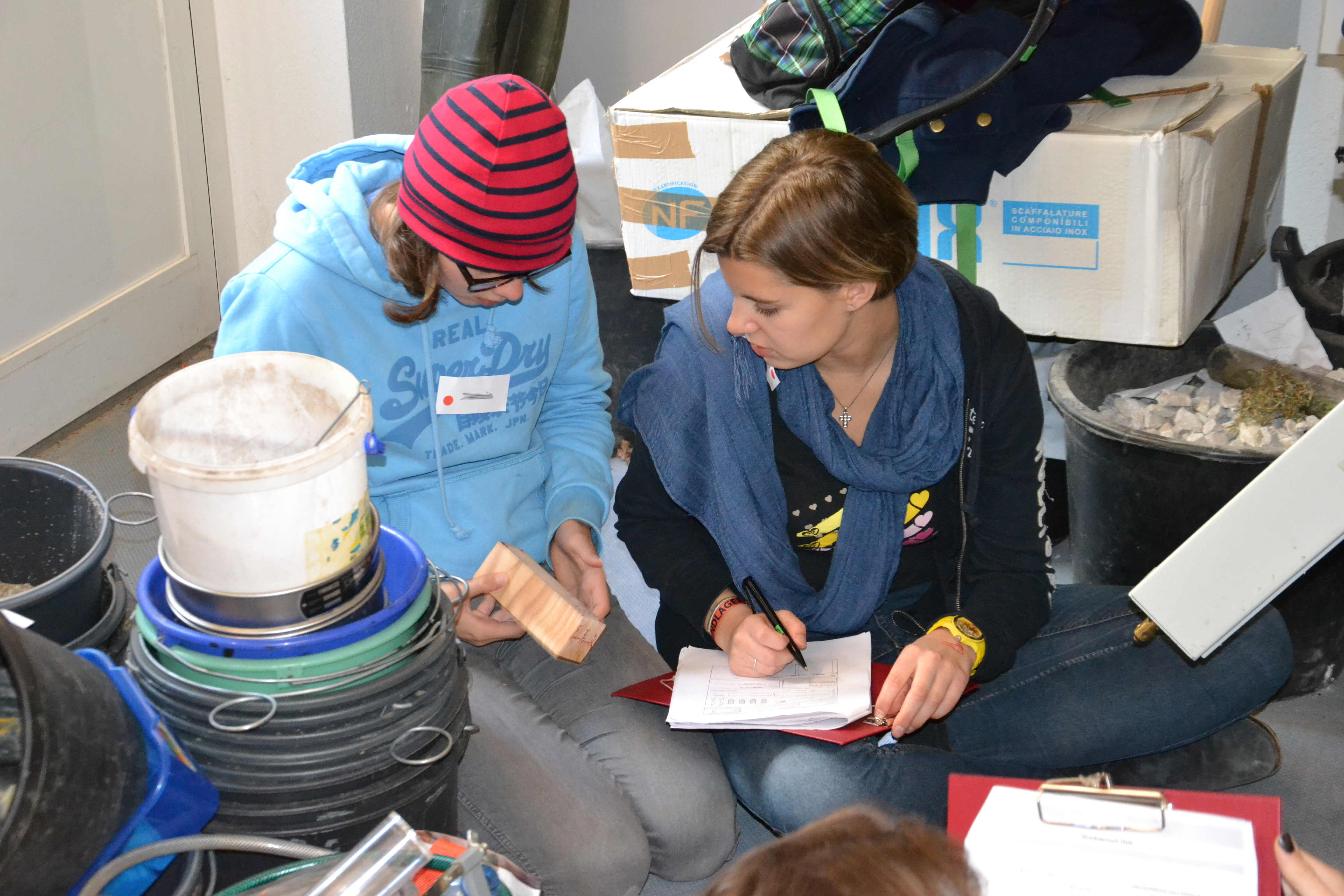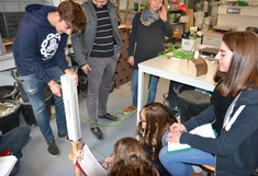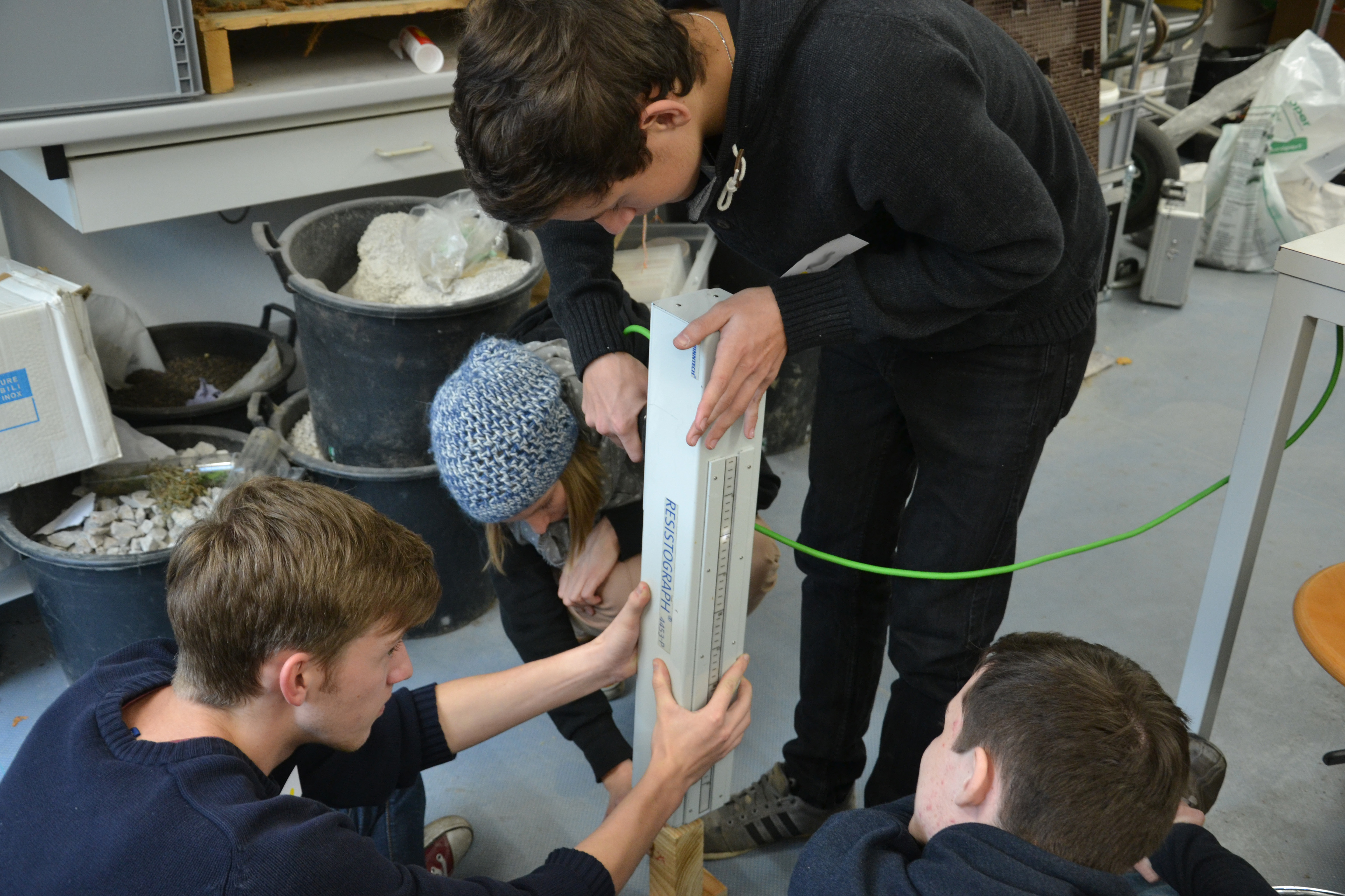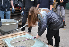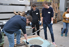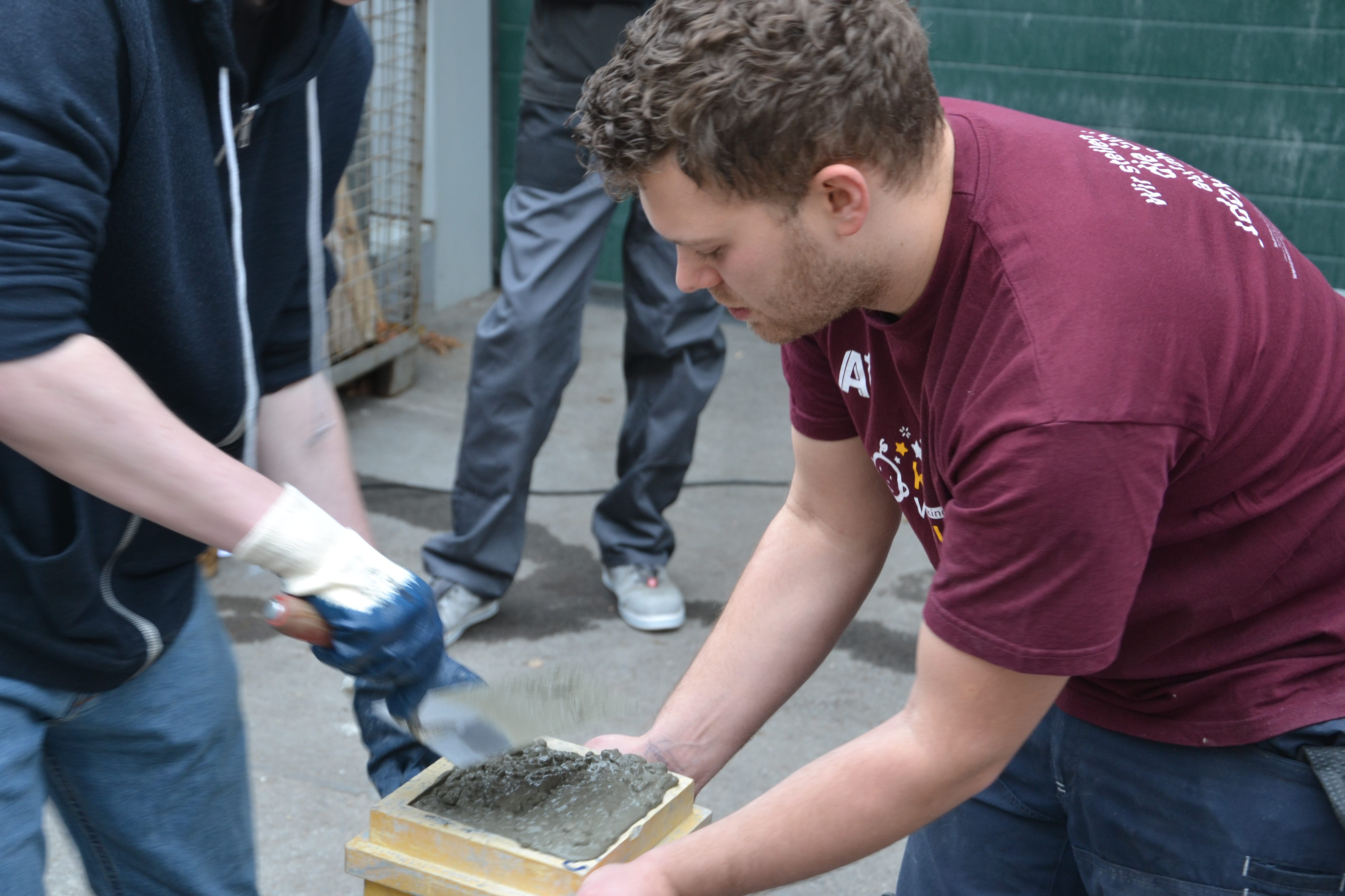 Endlich ist es soweit, die Versuchsreihe hat begonnen. Holz und Beton werden in ihrer ersten Lebensspanne nach der Herstellung über 1,5 Jahre beobachtet. Die SchülerInnen beschäftigten sich mit dem ersten, dem Referenzversuch. Nach der Herstellung von Betonprüfkörpern für die weiteren Prüfserien wurden gemeinsam von Laboranten, MasterstudentInnen und SchülerInnen Druck- und Biegeversuche durchgeführt und Bohrwiderstandsmessungen mit dem Resistographen unternommen. Am Ende der zwei Tage konnten wir zufrieden auf 10 geprüfte Betonkörper und 21 geprüfte Holzkörper zurückschauen.