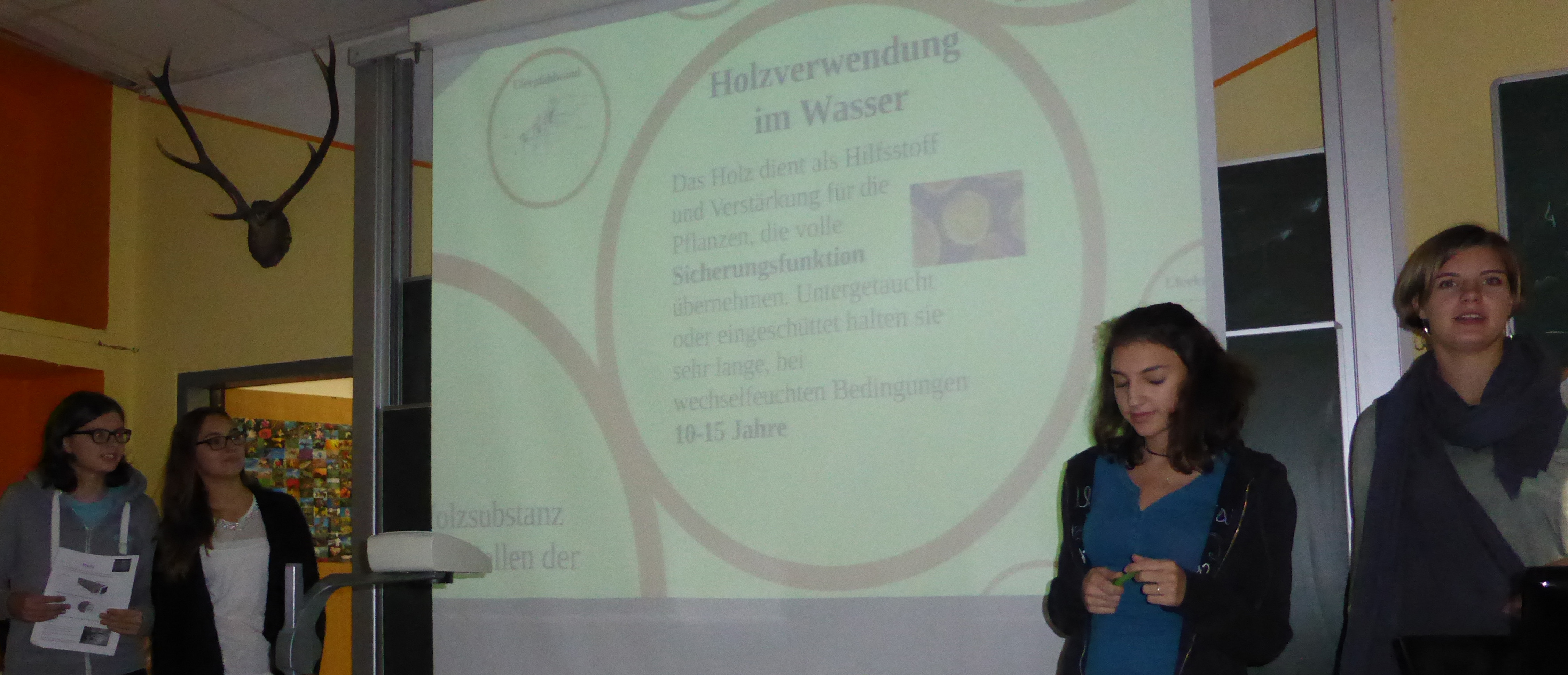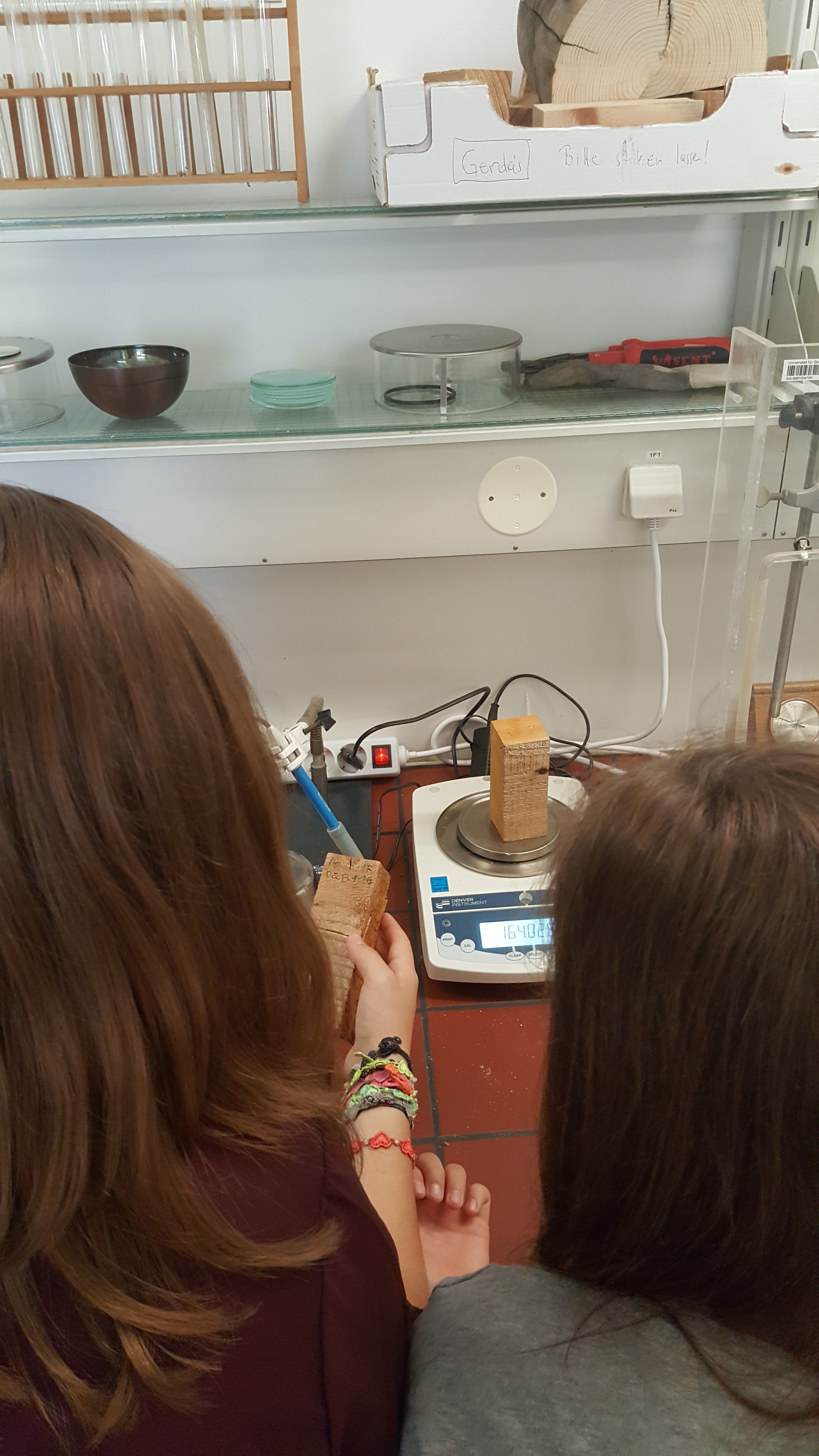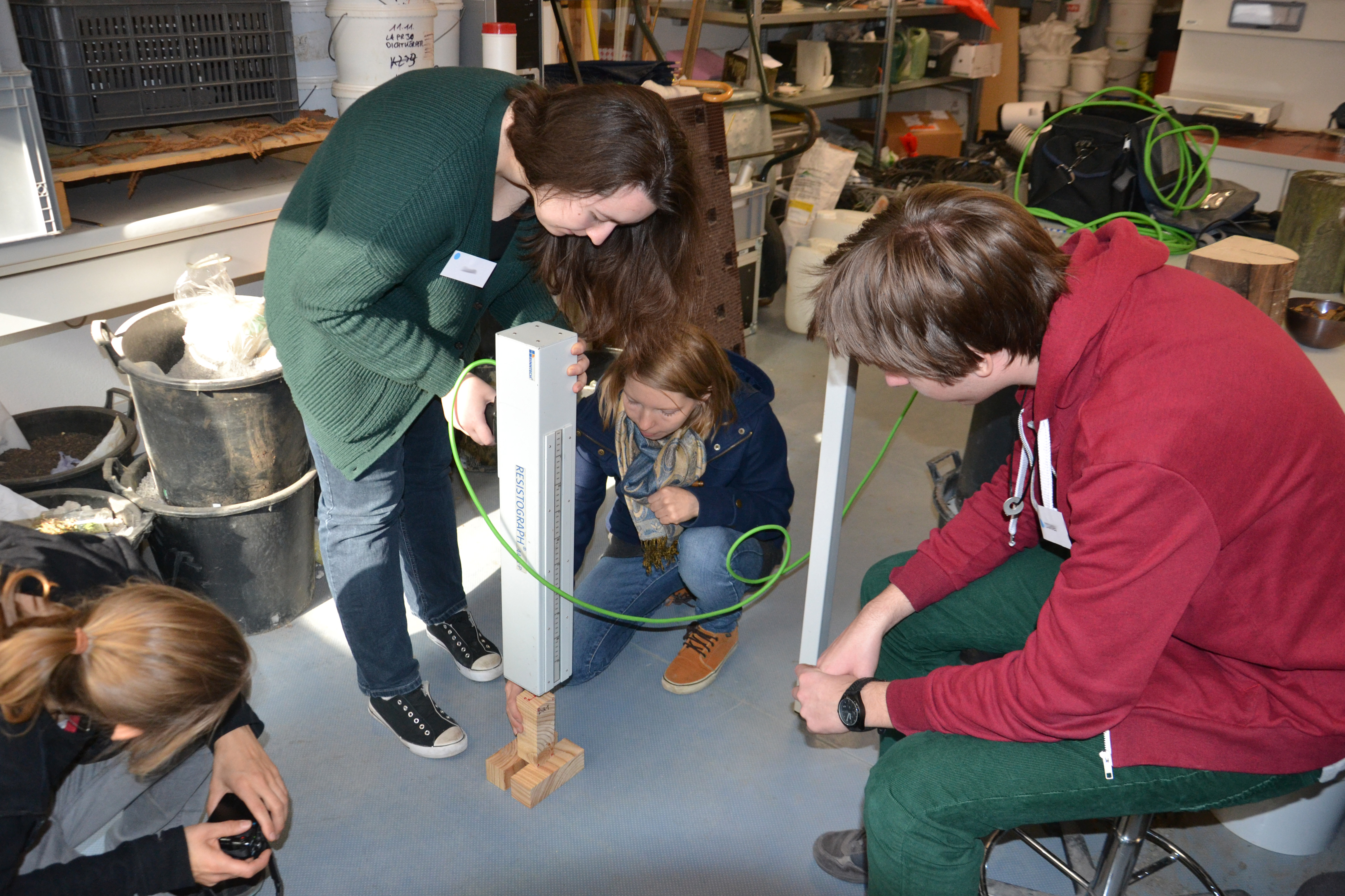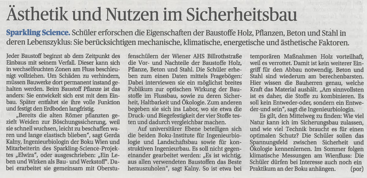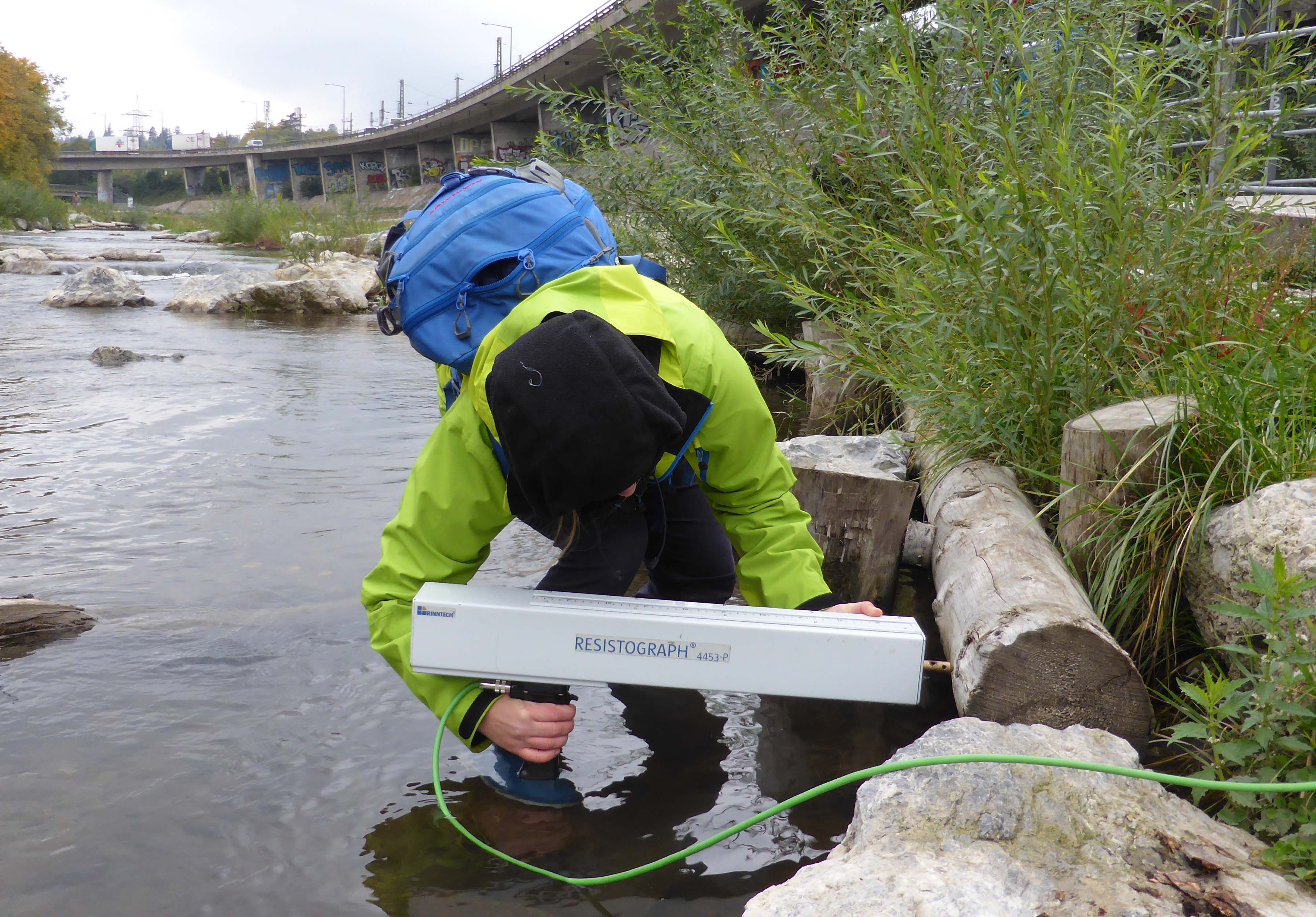 Im Rahmen der BOKU Lehrveranstaltung „Vertiefungsprojekt zu Ingenieurbiologie“ arbeiteten Studentinnen an den Materialeigenschaften von Holz. Dazu wurde Holz von verschieden alten ingenieurbiologischen Bauwerken entnommen, Prüfkörper herausgeschnitten und diese auf ihre Dichte und ihre Druckfestigkeit geprüft. Der Zustand des Holzes wurde des Weiteren im größeren Rahmen durch Resistographenmessungen, vor Ort am Fluss, geprüft.
