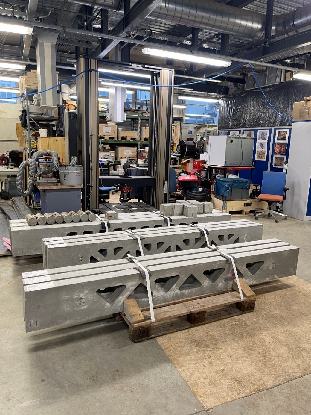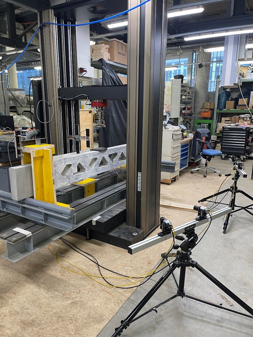 Darüber hinaus werden strukturoptimierte Träger modelliert und hergestellt. In begleitenden Versuchen wird das im Projekt entwickelte Materialmodell überprüft und validiert, um den Transfer der theoretischen Ansätze in die Praxis sicherzustellen. Durch die Einführung einfacher, wiederholbarer Hohlräume, die von bekannten Fachwerkkonfigurationen inspiriert sind, in die Stahlbetonträger können bis zu 20 % Beton eingespart und entsprechende CO₂-Emissionen reduziert werden – ohne auf kostenintensive Hochleistungsmaterialien angewiesen zu sein.
