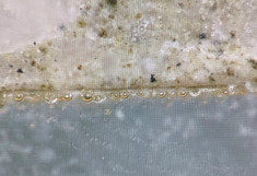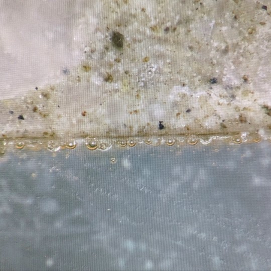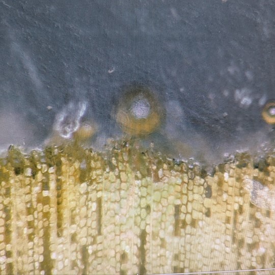 Unter dem Mikroskop zeigt die Schnittstelle zwischen Holz und Beton beeindruckende Details. Wird die Verbindung mit Harz hergestellt, dringt dieses tief in die Holzstruktur ein und bildet einen komplexen mechanischen Verbund. Gleichzeitig weist die Betonoberfläche, geprägt durch Schalung und Trennmittel, unterschiedliche Texturen auf, die die Ausbildung der Verbundfuge beeinflussen.