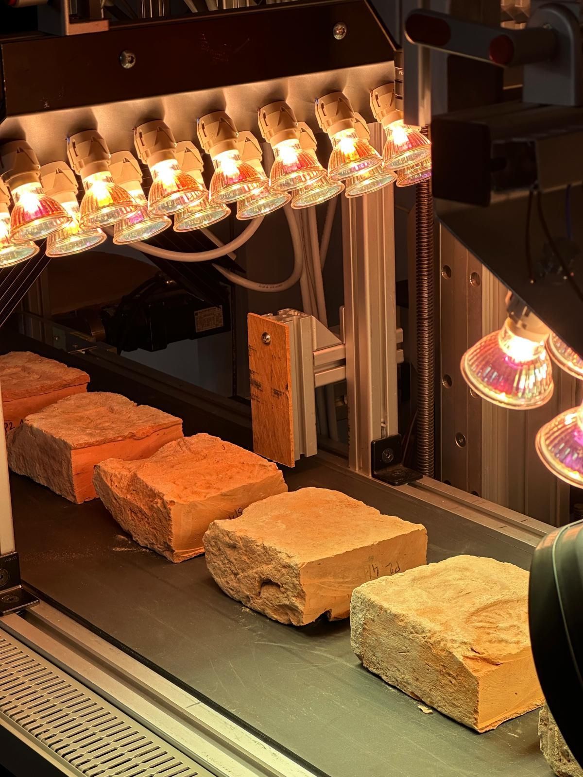 Derzeit erforschen wir, wie sich mithilfe von Infrarotkameras und Spektroskopie Aussagen über die innere Zusammensetzung und damit über die Festigkeit treffen lassen. Ziegel aus einem Wiener Altbau wurden bereits spektroskopisch untersucht und anschließend druckgeprüft. Die gewonnenen Daten werden mithilfe künstlicher Intelligenz ausgewertet, die Muster und Zusammenhänge schneller erkennt als ein Mensch.