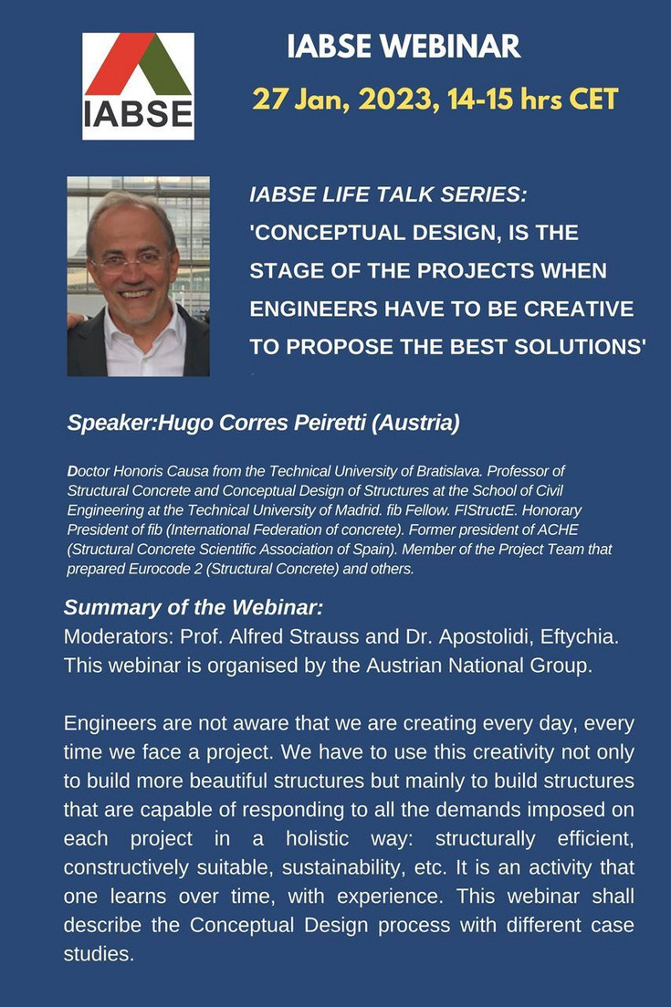 Speaker: Prof. Hugo Corres Peiretti, Prof PhD MSc BSc(Eng) FIStructE fib Honorary President Ffib, FHECOR.