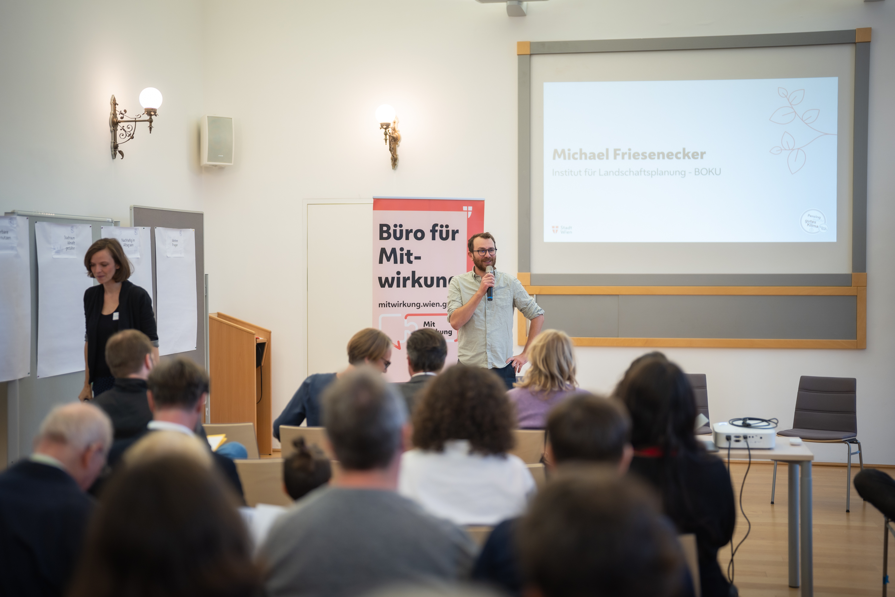Michael Friesenecker wurde als Experte zum Wiener Klimateam-Forum in Penzing geladen, um einen kurzen Input zur Relevanz von Klimawandelanpassung und Klimaschutz im Alltag und in der Nachbarschaft zu geben. Der Input war gefolgt von einer Diskussion gemeinsam mit Bewohner*innen Penzings, Stadtrat Jürgen Czernohorszky, Bezirksvorsteherin Michaela Schüchner und Wencke Hertzsch (Büro für Mitwirkung).