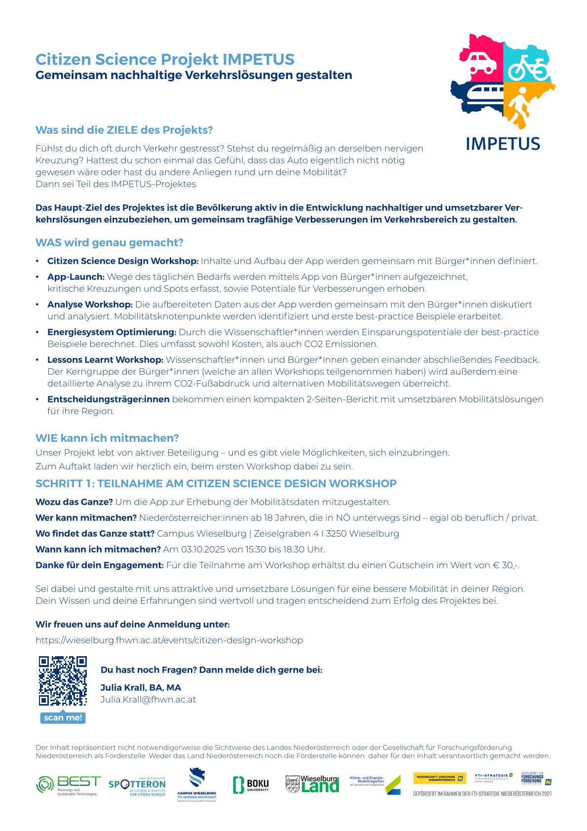Wie können wir unsere alltäglichen Wege umweltfreundlicher, sicherer und effizienter machen? Genau dieser Frage widmet sich unser Projekt IMPETUS – und das Besondere daran: Die Bevölkerung ist aktiv mit an Bord!