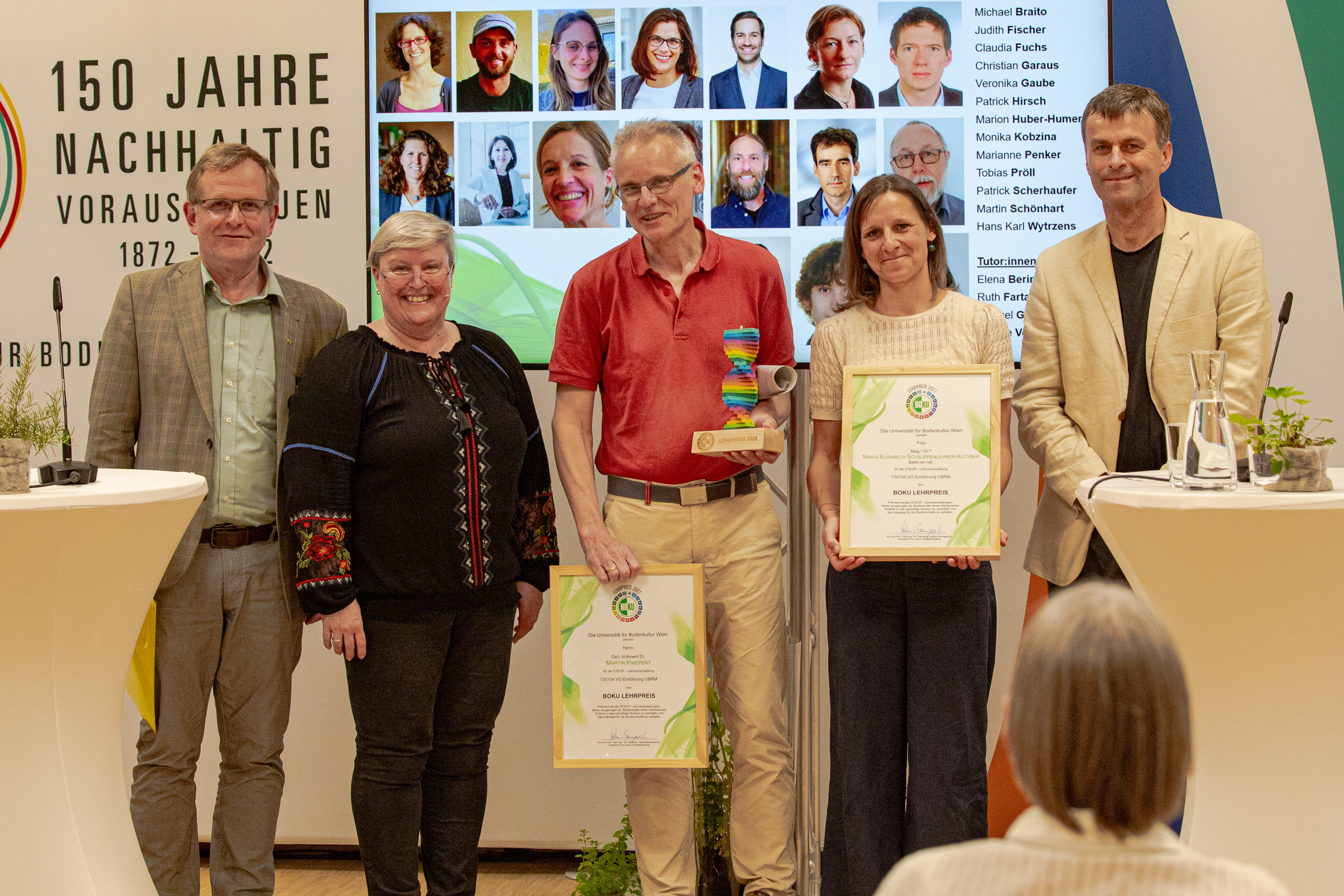 Preisträger:innenteam: Mag.a Dr.in Elisabeth Schauppenlehner-Kloyber, Dipl.-Volkswirt Dr. Martin Kniepert, Mag.a Lisa Bohunovsky, MSc., Mag. Dr. Michael Braito, Judith Fischer, B.A. M.A., LL.M. Mag.a Dr.in Claudia Fuchs, Mag. Dr. Christian Garaus, Mag.a rer.nat. Dr.in phil. Veronika Gaube, Assoc. Prof. Mag. Dr. Patrick Hirsch, Univ.Prof.in Dipl.-Ing.in Dr.in nat.techn. Marion Huber-Humer, Mag.a Dr.in Monika Kobzina, Univ.Prof.in Dipl.-Ing.in Dr.in nat.techn. Marianne Penker, Univ.Prof. Dipl.-Ing. Dr.techn. Tobias Pröll, Mag. Dr.phil. Patrick Scherhaufer, Dipl.-Ing. Mag. Dr. Martin Schönhart, Ao.Univ.Prof. Dipl.-Ing. Dr.nat.techn. Hans Karl Wytrzens