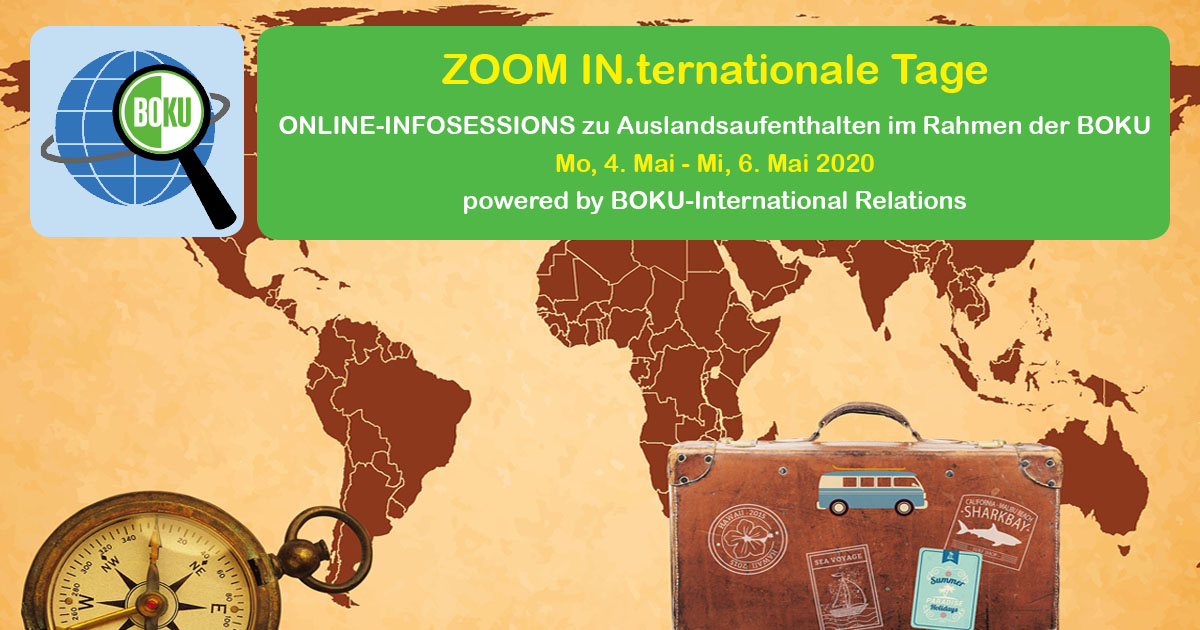 Von 4. - 6. Mai 2020 warten spannende Online-Infosessions über Stipendien für Studierendenaufenthalte und Praktika, Infos zu internationalen Masterprogrammen sowie ein virtuelles Meet & Greet mit internationalen Studierenden auf euch! Special: Online-Vortrag über Summer Schools und den bäuerlichen Alltag in Ostafrika und Südostasien! Zoom in and find out!