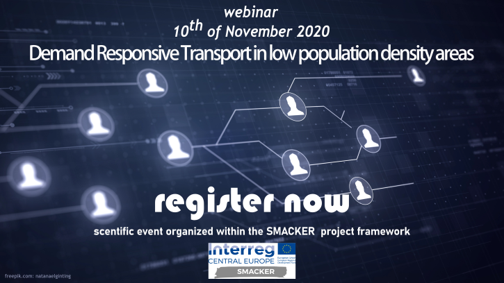 Interreg-Projekt SMACKER: Virtuelle Konferenz "Demand responsive transport in low population density areas" Diese Seite ist erreichbar unter: https://boku.ac.at/news/newsitem/61378 10. November 2020 vergrößern 03.11.2020