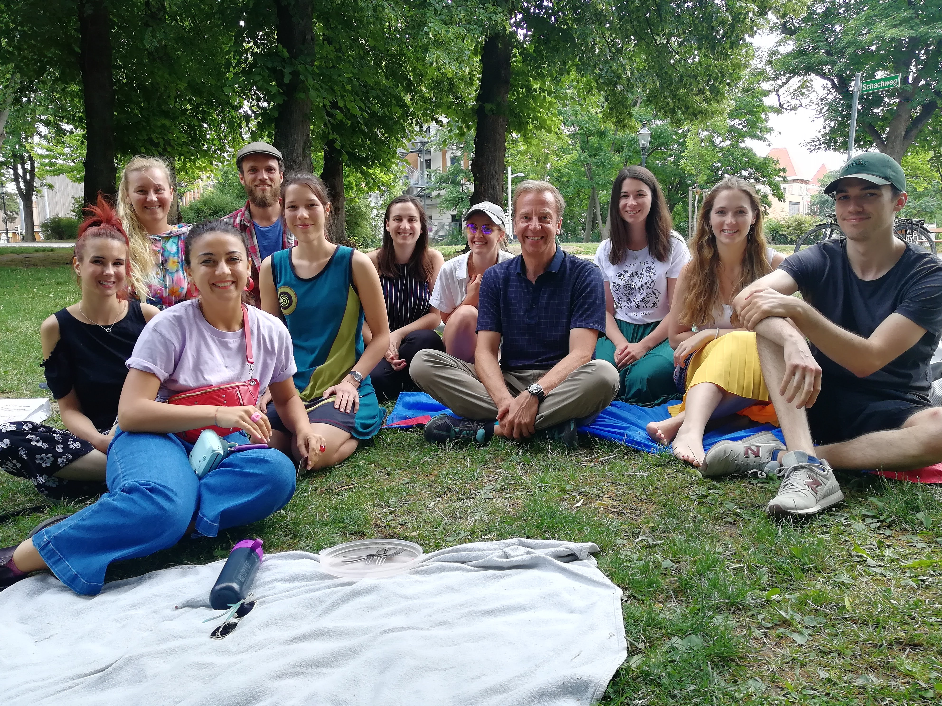 Aufgrund der Corona-Pandemie konnten viele Studierende weder ihre Lehrenden noch ihre StudienkollegInnen im Laufe des Semesters persönlich treffen und kennenlernen. Aus diesem Grunde hat Rainer Haas seine Studierenden zum Semesterausklang am 30. Juni in den Türkenschanzpark eingeladen. Nach all den Monaten des „Bildschirm-Daseins" war es wohltuend, sich persönlich Face-to-face zu treffen und sich über die Erfahrungen des vergangenen Semesters auszutauschen.