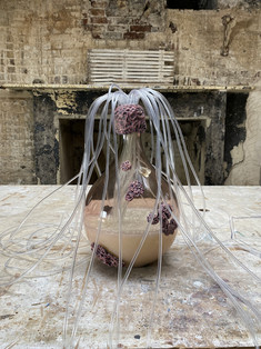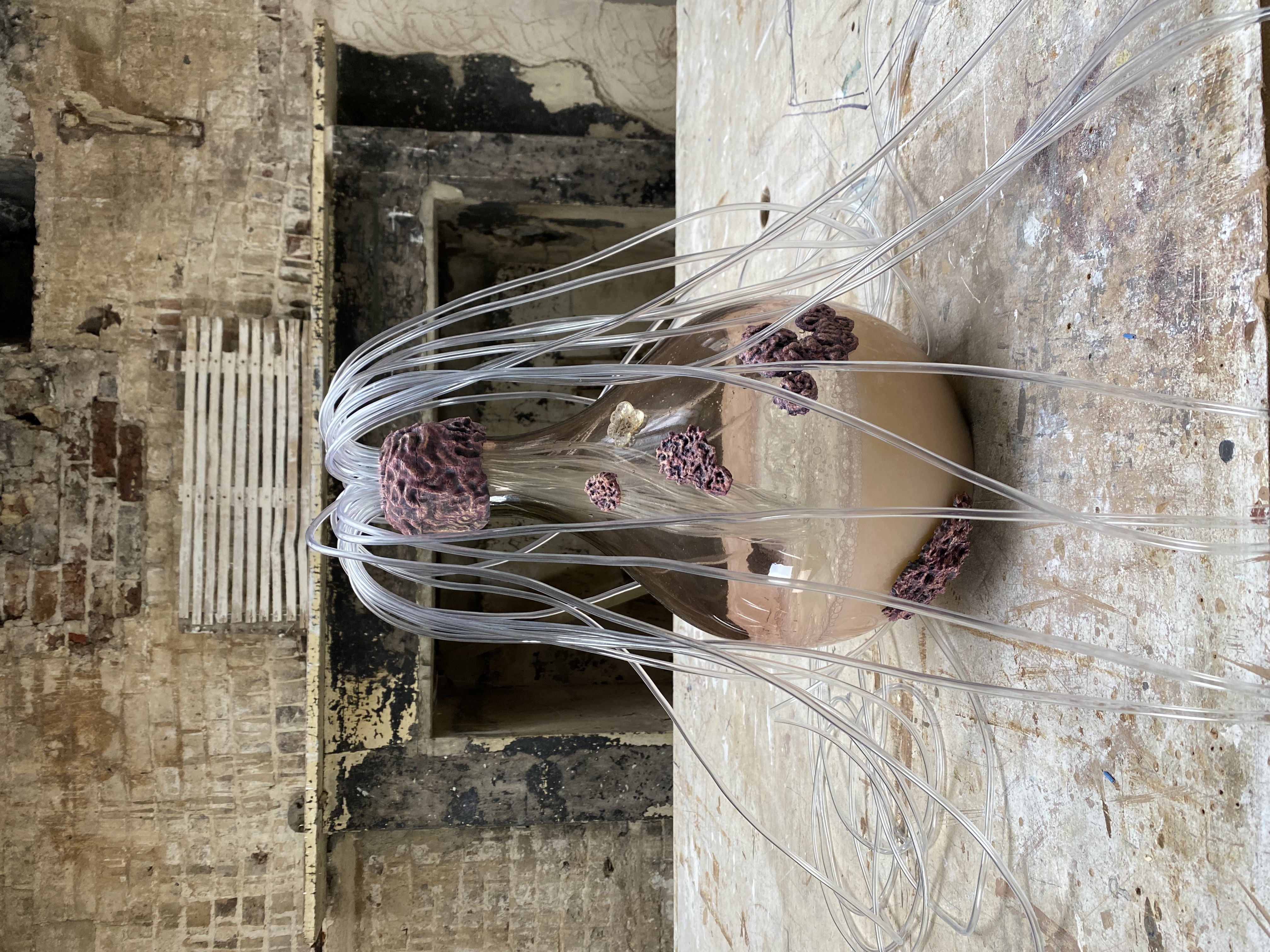 Der thematische Bogen der Arbeiten der beiden Künstler spannt sich vom Klimawandel, CO2-Speicherung und der globalen Plastikverschmutzung der Erde, über Bio-Archäologie und Vergänglichkeit bis hin zur langen Koevolution von Mensch und Hefe.