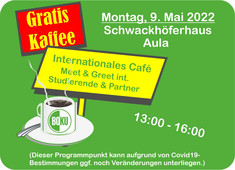 Beim Internationalen Café vernetzen sich internationale Austauschstudierende aus aller Welt mit BOKU-Studierenden und BOKU-Mitarbeiter*innen. Kaffee und kulinarische Kostproben stehen zur Verfügung solange der Vorrat reicht. Ein interkulturelles Erlebnis an der BOKU - komm vorbei!