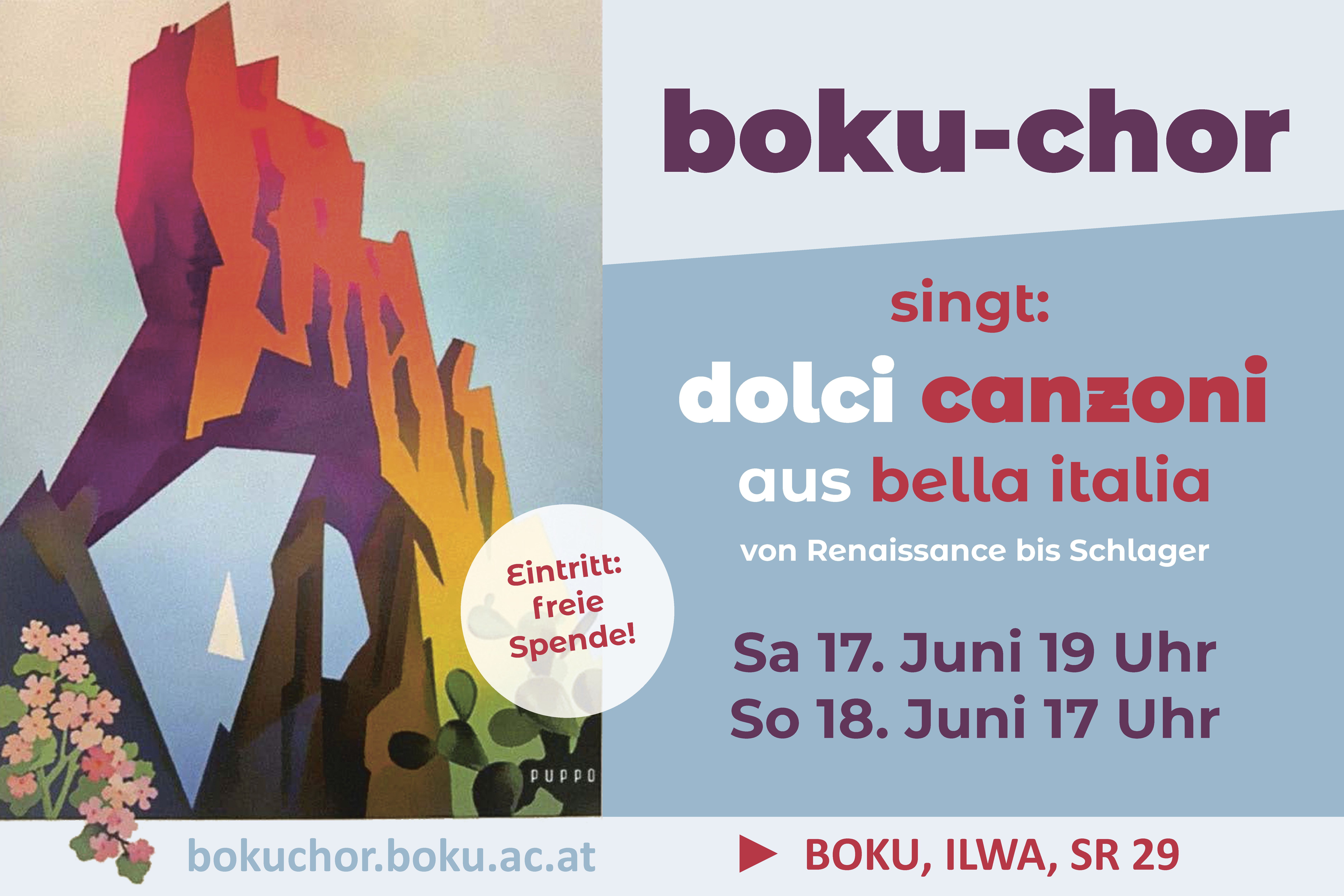 Wir singen mit dem Boku-Chor un programma misto mit vielen dolci canzoni - gute alte Musik aus der Renaissance, Schlager & Italo-Pop, ein paar kritische Stücke und alles mögliche dazwischen ...