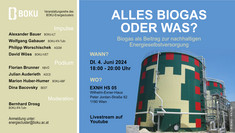 Der BOKU-Energiecluster lädt am 04. Juni 2024, um 18:00 Uhr, zur Veranstaltung "Alles Biogas oder was?"
