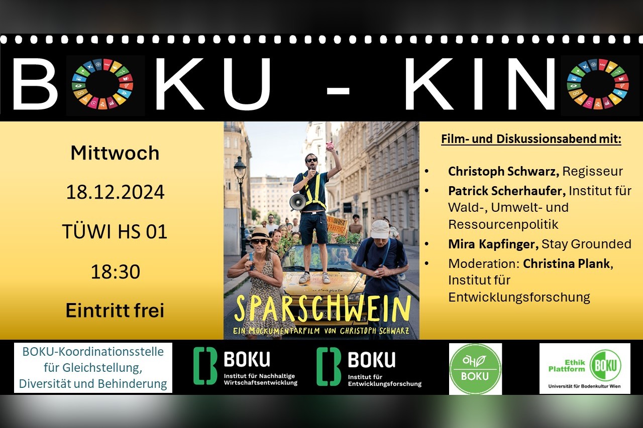 “Sparschwein, selbstironischer Meta-Dokumentarfilm über Doppelmoral in Zeiten der Klimakrise, über die Privilegien des Autoverkehrs in der Stadt und die Möglichkeiten, dagegen anzukämpfen – humorvoll erzählt mit dem für Christoph Schwarz typischen, spielerischen Umgang mit Wahrheit und Lüge (christophschwarz.net)”.