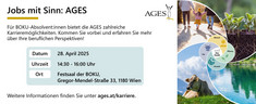 Für BOKU-Absolvent:innen bietet die AGES zahlreiche Karrieremöglichkeiten. Kommen Sie vorbei und erfahren Sie mehr über Ihre beruflichen Perspektiven!