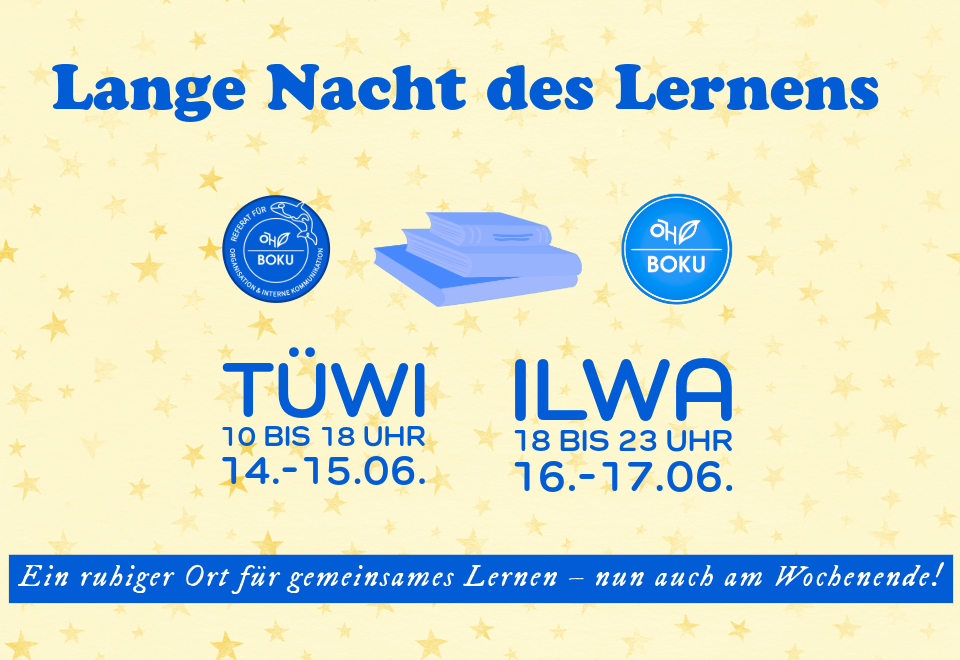 Wie schon im letzten Semester veranstalten wir wieder die Lange Nacht des Lernens – dieses Mal mit erweitertem Angebot, um euch noch besser bei der Vorbereitung auf die Prüfungsphase zu unterstützen!