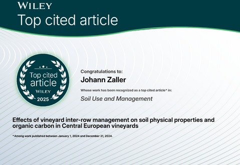 Aktuelles BOKU-StartDepartment für Ökosystemmanagement, Klima und BiodiversitätInstitut für ZoologieAktuelles Diese Seite ist erreichbar unter: https://boku.ac.at/oekb/zool/aktuelles https://short.boku.ac.at/zoologie-news Instituts-News: ► Alle Instituts-News Ausgezeichnete Dissertation von Maria Peer Wir gratulieren! Phosphorus as Pharmakon Masterabeit in Kooperation mit der Angewandten Erfolgreiches Rigorosum von Dmytrio Monoshyn Wir gratulieren! Bevorstehende Veranstaltungen: ► Alle Veranstaltungen Zwischen Daten und Naturschutz: Biodiversitätsarbeit am Umweltbundesamt Zoologisch-ökologisches Seminar, 21.04.2026 Ökologische Zeigerwerte der Pflanzen - wo soll man welche Werte verwenden? Zoologisch-ökologisches Seminar, 05.05.2026 Beiträge der Biologischen Landwirtschaft für ein Agrar- und Ernährungssystem innerhalb der planetaren Grenzen Zoologisch-ökologisches Seminar, 09.06.2026 Aktuelle Medienberichte: ► Alle Medienberichte Auszeichnung "Top cited article" für Johann Zaller Achtung Igel! Citizen Science Studie startet mit Auftaktveranstaltung im Museum Niederösterreich Den Würmern auf der Spur Neue Publikationen: ► Alle Publikationen und Projekte From cropland to alpine meadows: Earthworm diversity in agroecosystems across Austria Mittmannsgruber et al, 2026, Ecosystems & Environment Bee-Plant networks in agricultural landscapes are enhanced by increased landscape diversity and agri-environmental measures Kratschmer et al, 2026, Agriculture, Ecosystems & Environment Do sheep-grazed pastures support insectivorous bat activity and bat species richness? Wiesinger & Suarez-Rubio, 2026, PLoS One