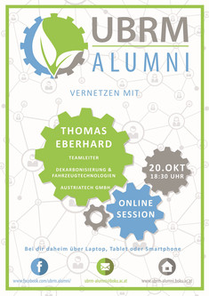 Beim 27. digitalen Netzwerktreffen am 20. Oktober sich alles um die Mobilitätswende. Hierfür dürfen wir als Gast UBRM-Alumni Thomas Eberhard, Leiter des Teams Dekarbonisierung & Fahrzeugtechnologien in der Abteilung Mobilitätswende & -ökosysteme bei AustriaTech GmbH begrüßen.