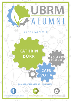 Hinweis: Die Podiumsdiskussion findet im Rahmen der 3-tägigen Feier für das 20-jährige Bestehen des UBRM-Studiums statt. Unter anderem organisiert am 25.5. Nachmittags von 14.00-18.00 der BOKU Alumni Dachverband einen UBRM Jobtag - alles Infos hier alumni.boku.wien/site/de/veranstaltungen/kalender/calendar/1342.html